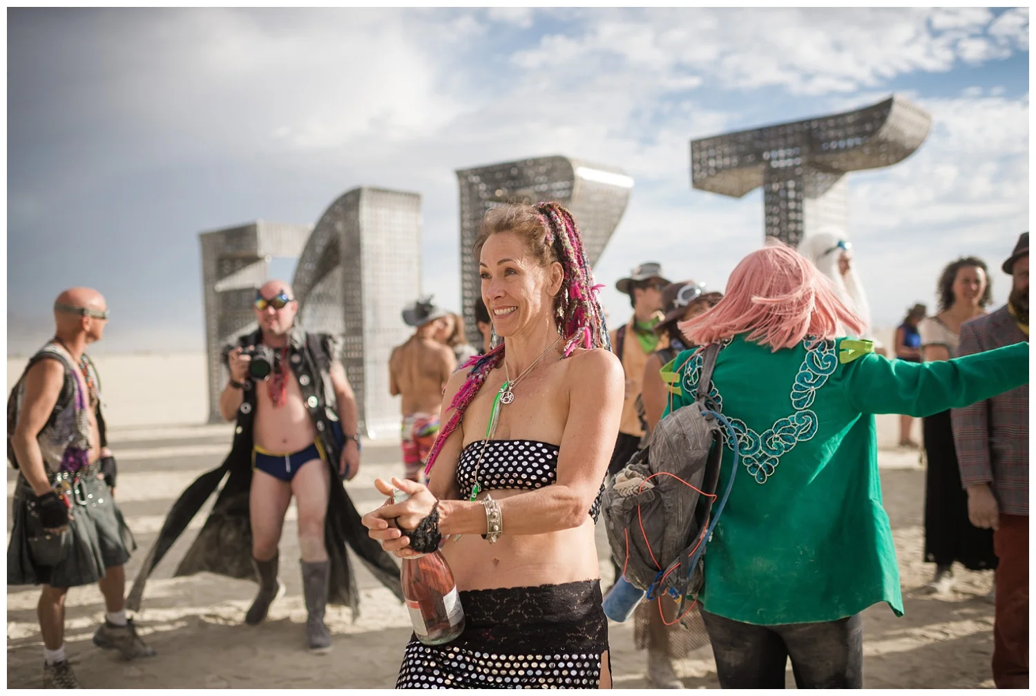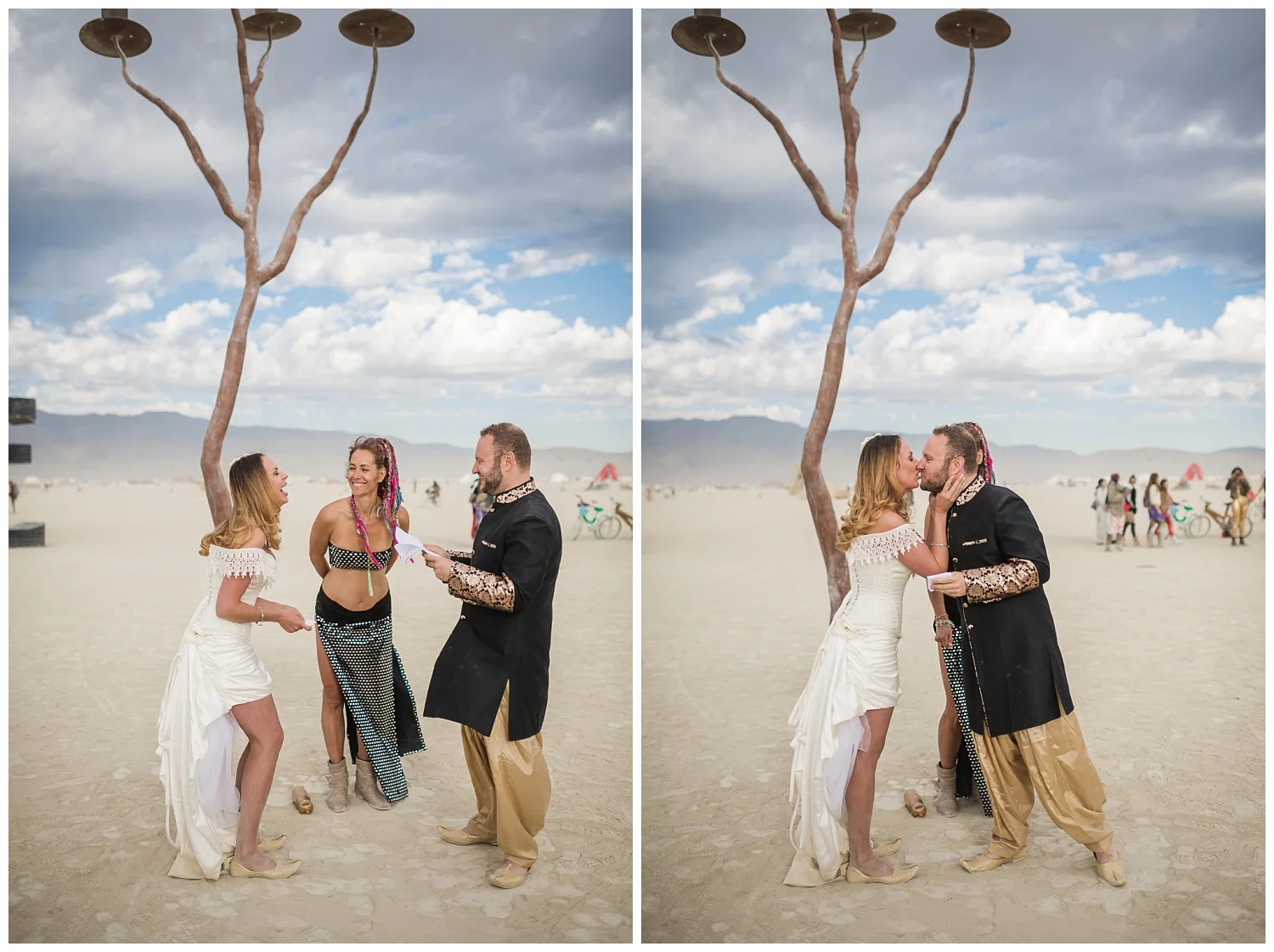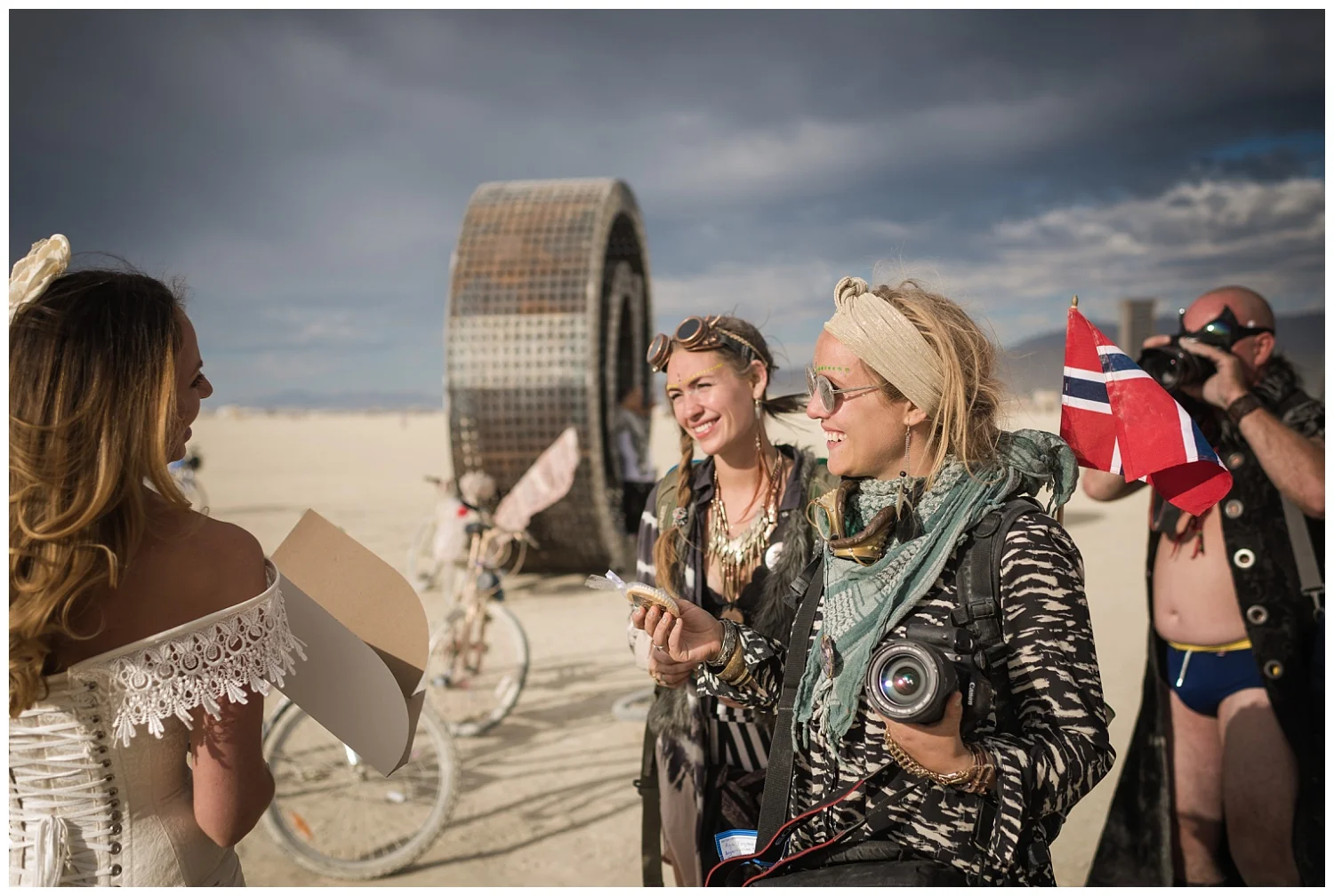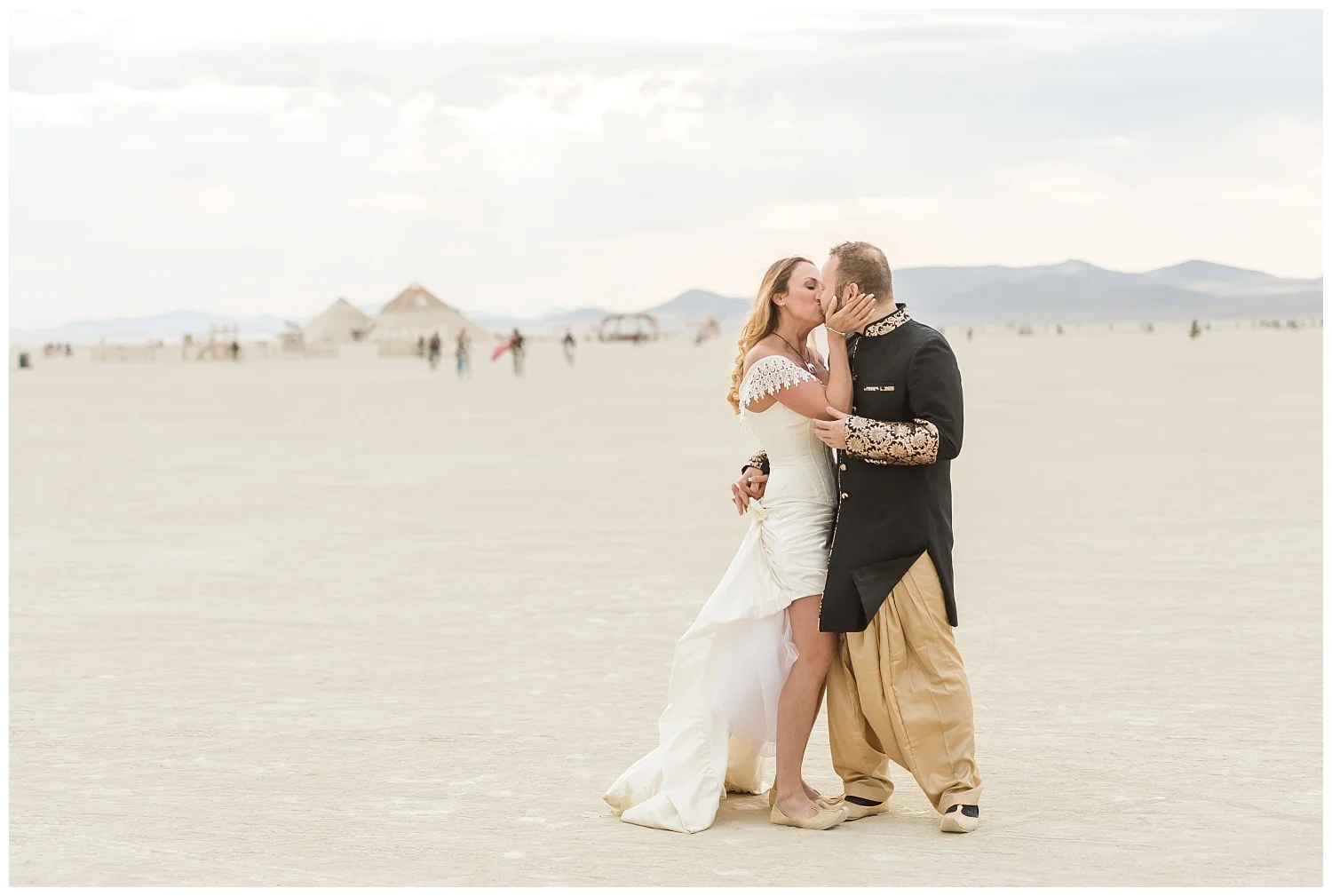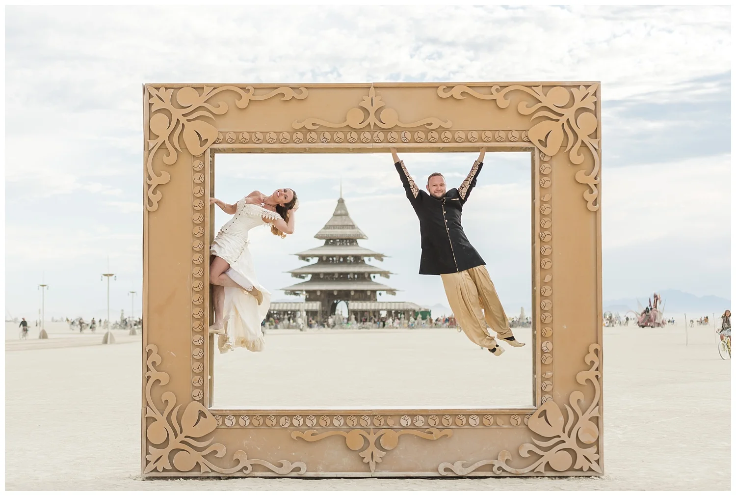 Forget the white dress and tux! Burning Man elopements are all about radical self-expression, and the outfits are no exception. I’ve seen couples tie the knot in everything from playa-ready jumpsuits to feather boas and goggles – it’s a photographer’s dream for capturing unique personalities. Light is key, though. Sunrises and sunsets paint the playa in magical hues and offer cooler temperatures for a more comfortable ceremony. Want a truly intimate moment? Head out to the iconic trash fence, a secluded spot for your “I do’s.” Otherwise, be prepared for fellow Burners to wander by and shower you with playa love (and maybe a little dust!).