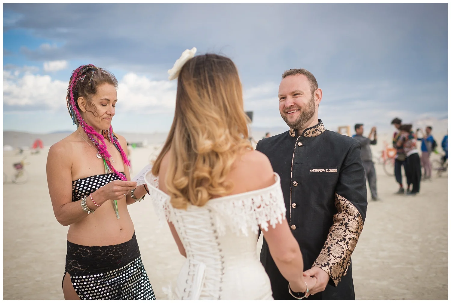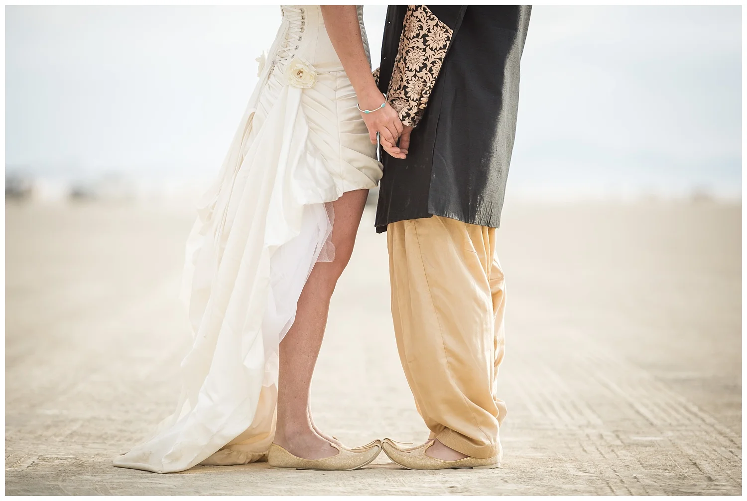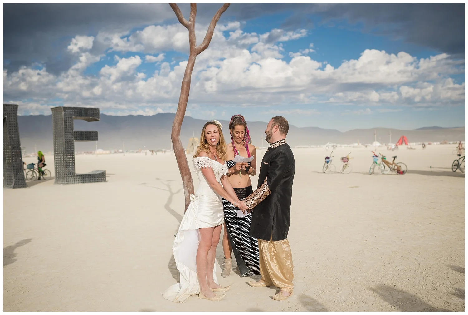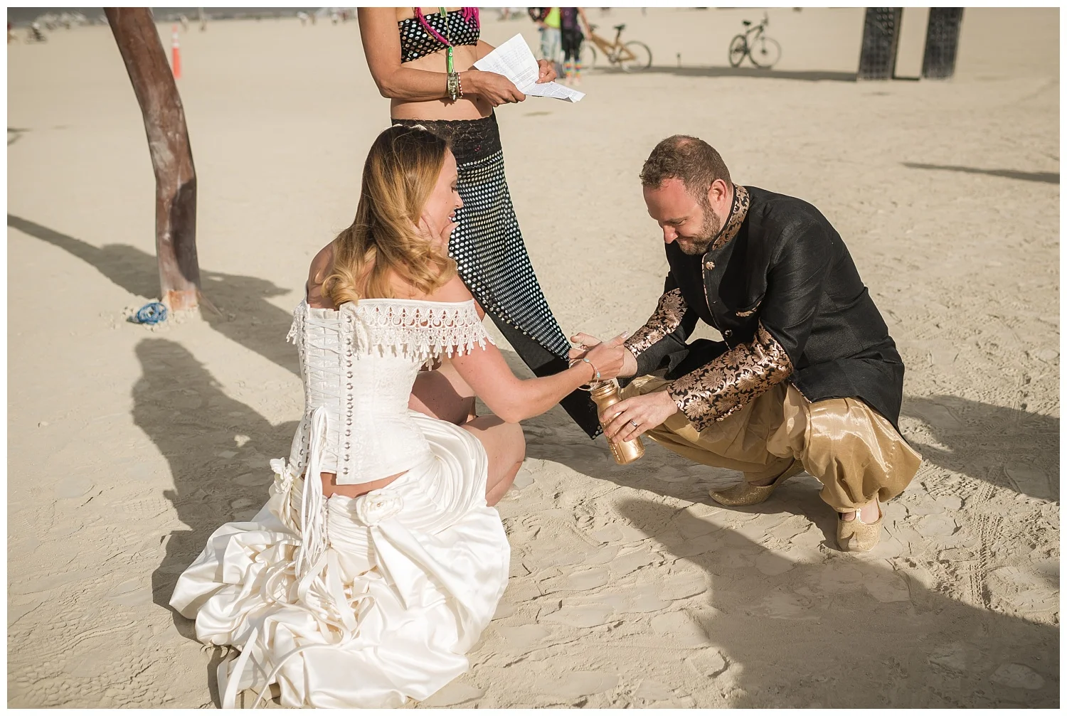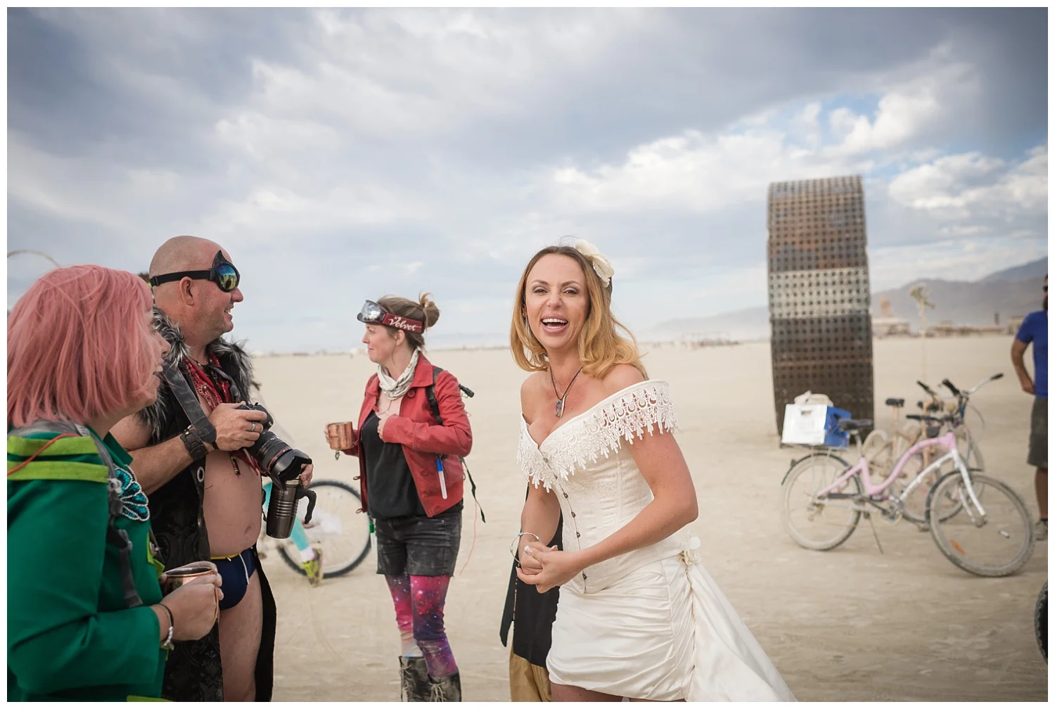 Forget the white dress and tux! Burning Man elopements are all about radical self-expression, and the outfits are no exception. I’ve seen couples tie the knot in everything from playa-ready jumpsuits to feather boas and goggles – it’s a photographer’s dream for capturing unique personalities. Light is key, though. Sunrises and sunsets paint the playa in magical hues and offer cooler temperatures for a more comfortable ceremony. Want a truly intimate moment? Head out to the iconic trash fence, a secluded spot for your “I do’s.” Otherwise, be prepared for fellow Burners to wander by and shower you with playa love (and maybe a little dust!).