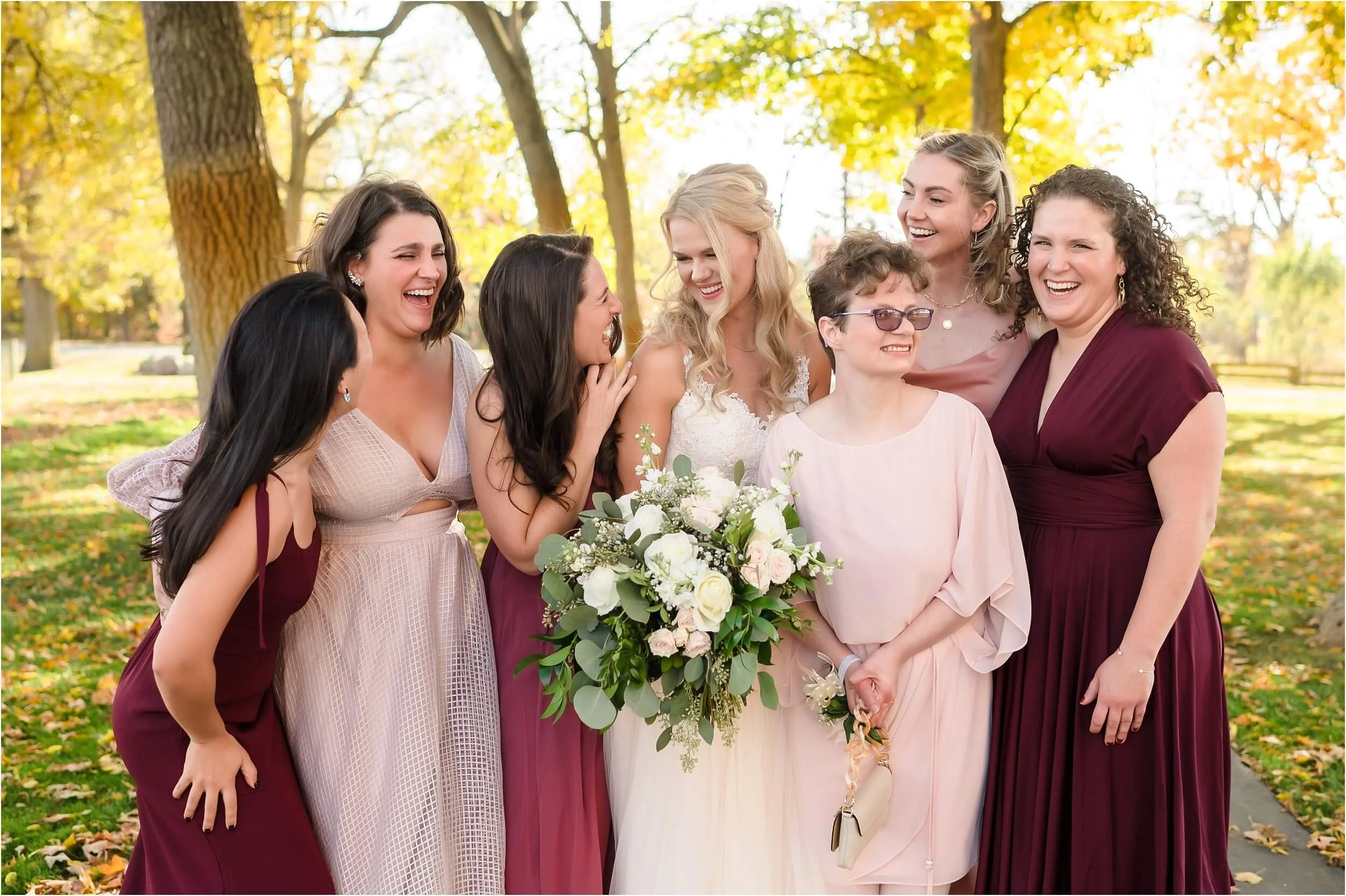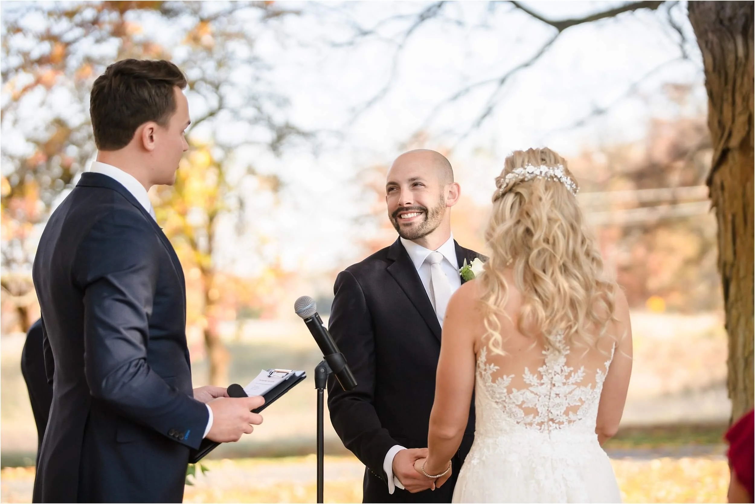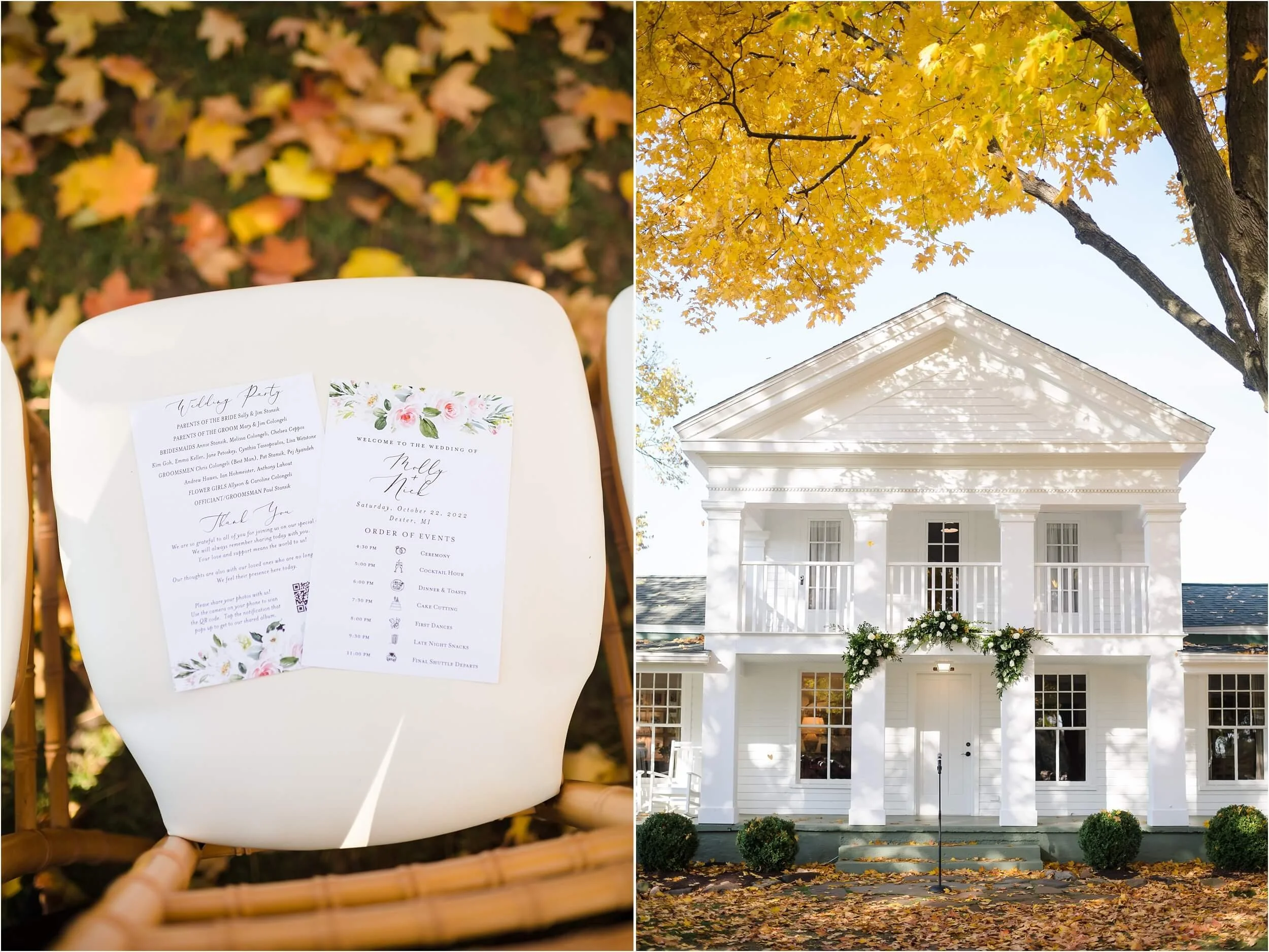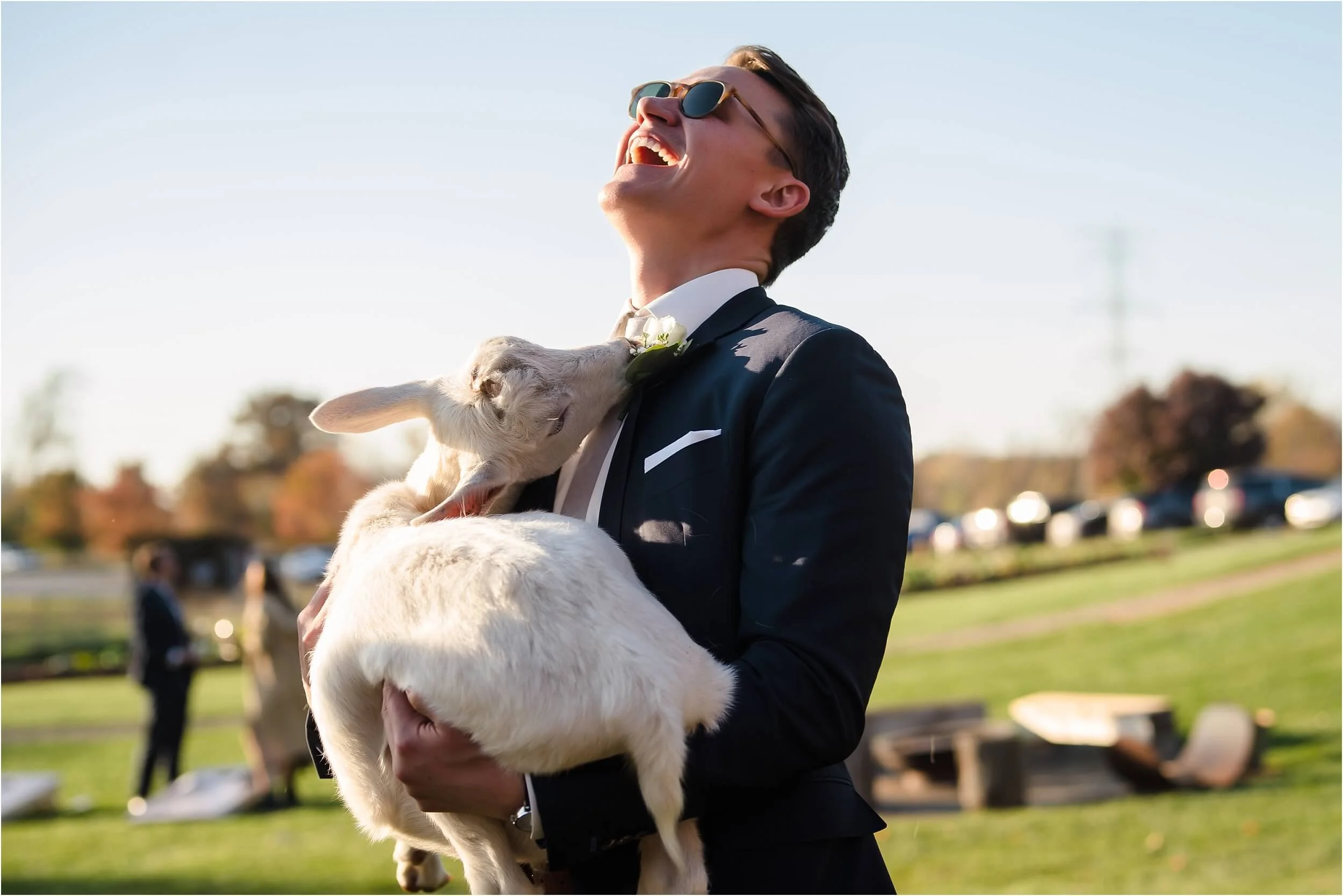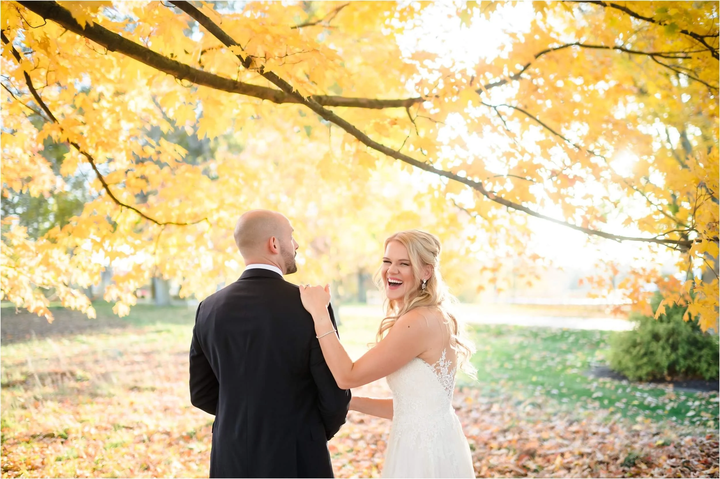 Fall really turned up the charm for this wedding at a gorgeous farmhouse wedding venue near Ann Arbor. M & N’s vows were seriously sweet, and it felt like the whole wedding was strictly about celebrating their love and spending time with the people they cared about most. Following the ceremony, guests were hanging out under the pergola, soaking in that crisp fall air, when – wouldn’t you know it? – a bunch of friendly goats decided to crash the cocktail hour for some extra photo ops and cuddles! As the sun set, a bonfire got crackling, and everyone gathered around to roast marshmallows, swap stories, and gaze up at the stars. As a Ann Arbor wedding photographer, I think barn weddings are the best, and they’re typically some of my favorite venues to photograph at. They’re so full of history and charm, and have that cozy vibe, which is perfect for a fall wedding. Plus, they usually have plenty of space indoors in case of rain (because Michigan weather can be a wild card!). For suggestions on some of my favorite venues in the area, check out this blog post.