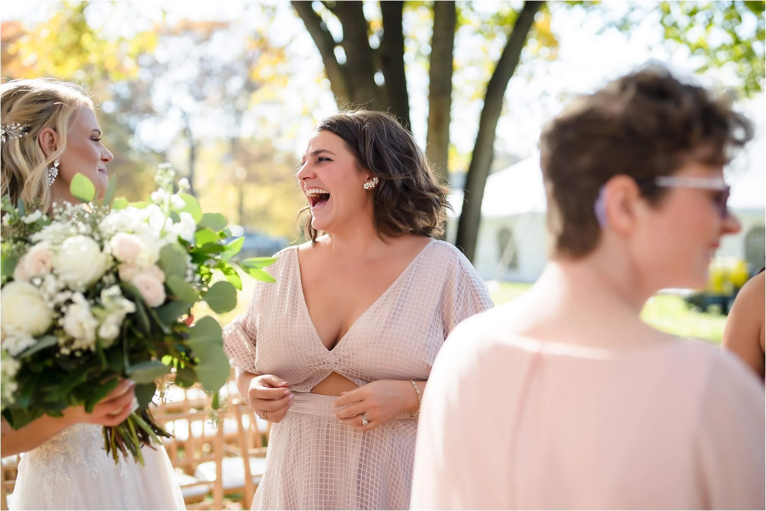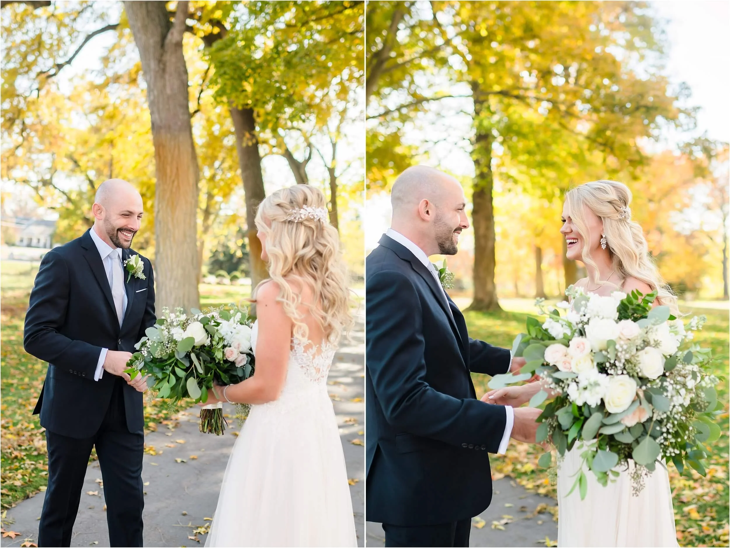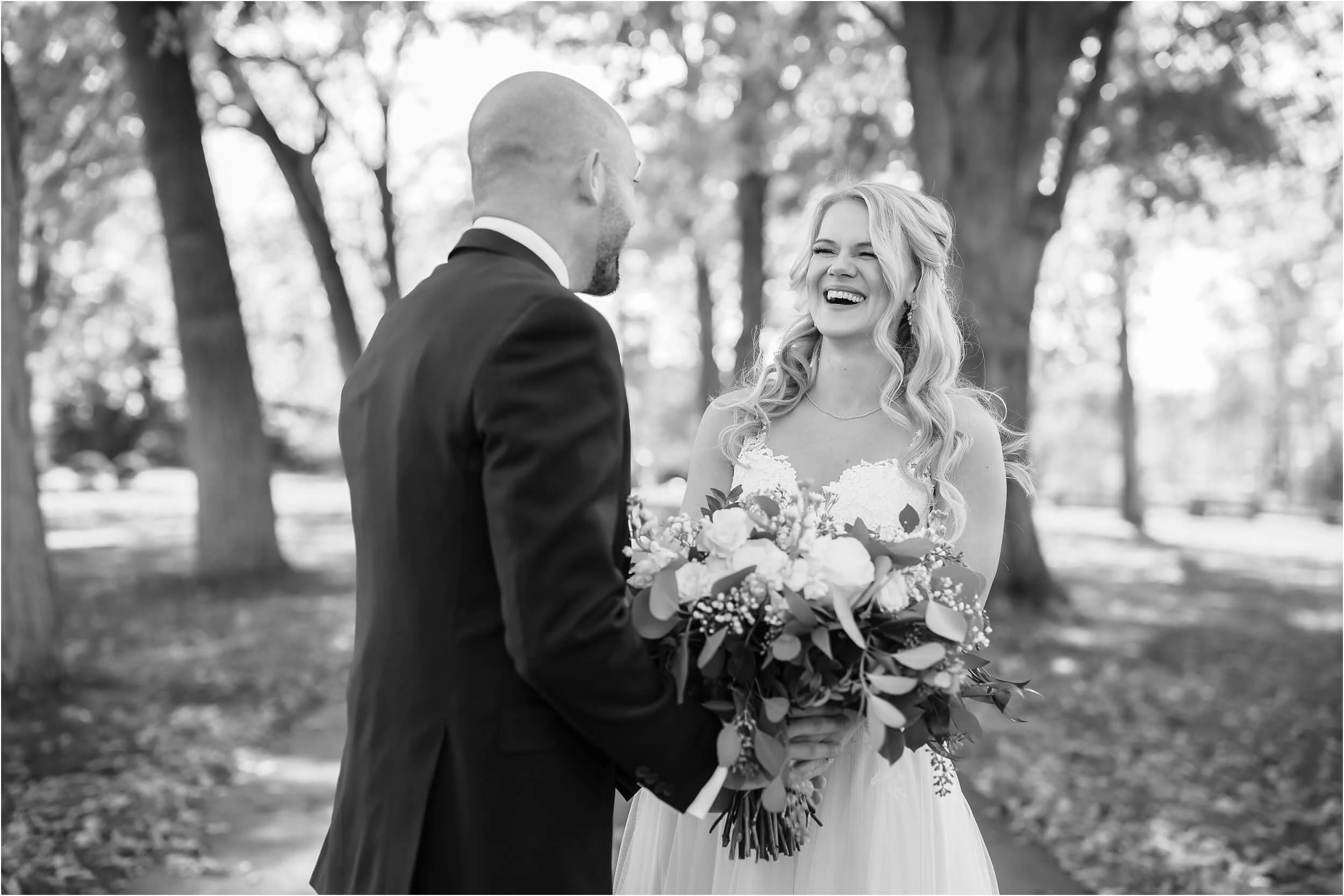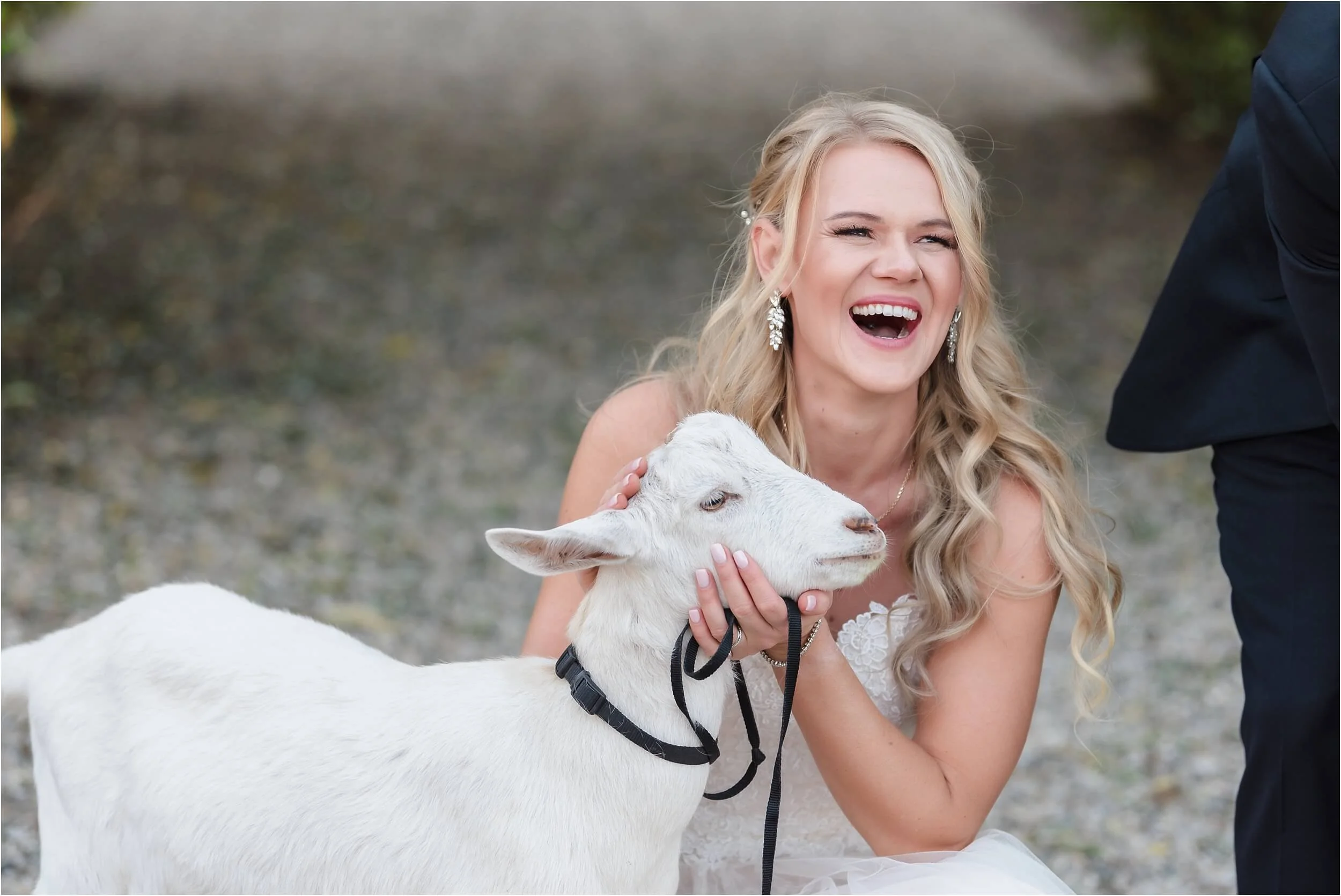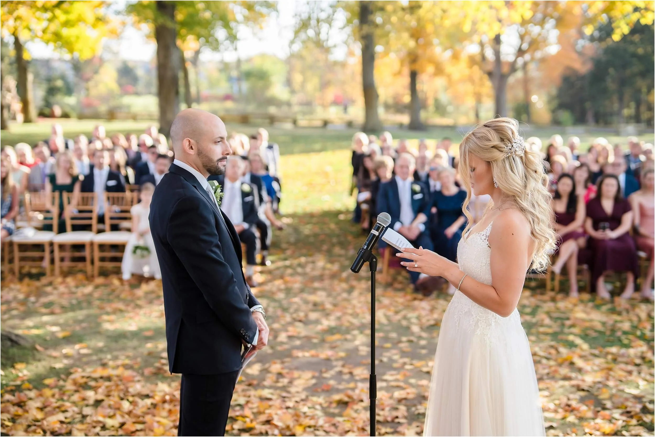 Fall really turned up the charm for this wedding at a gorgeous farmhouse wedding venue near Ann Arbor. M & N’s vows were seriously sweet, and it felt like the whole wedding was strictly about celebrating their love and spending time with the people they cared about most. Following the ceremony, guests were hanging out under the pergola, soaking in that crisp fall air, when – wouldn’t you know it? – a bunch of friendly goats decided to crash the cocktail hour for some extra photo ops and cuddles! As the sun set, a bonfire got crackling, and everyone gathered around to roast marshmallows, swap stories, and gaze up at the stars. As a Ann Arbor wedding photographer, I think barn weddings are the best, and they’re typically some of my favorite venues to photograph at. They’re so full of history and charm, and have that cozy vibe, which is perfect for a fall wedding. Plus, they usually have plenty of space indoors in case of rain (because Michigan weather can be a wild card!). For suggestions on some of my favorite venues in the area, check out this blog post.