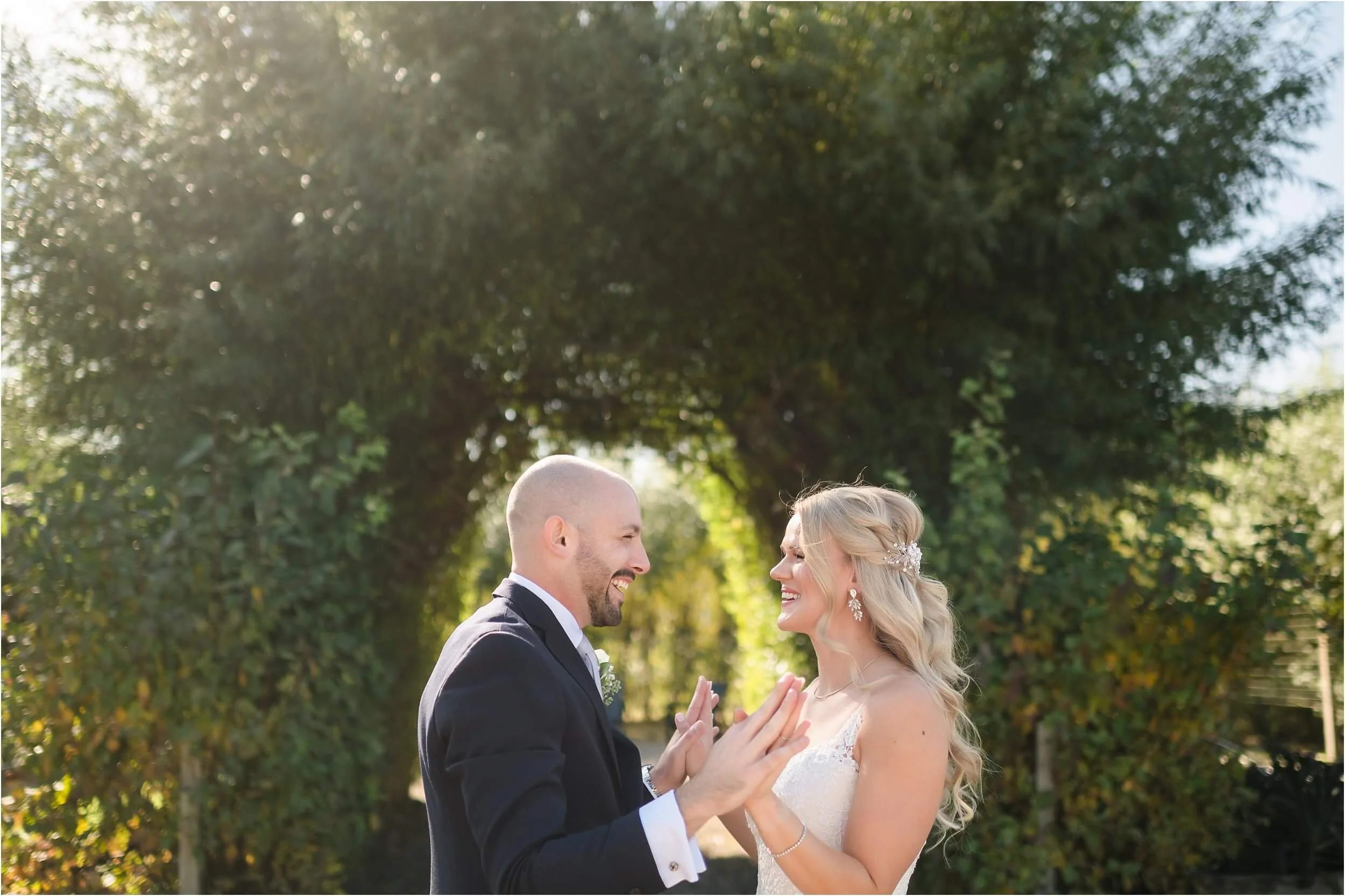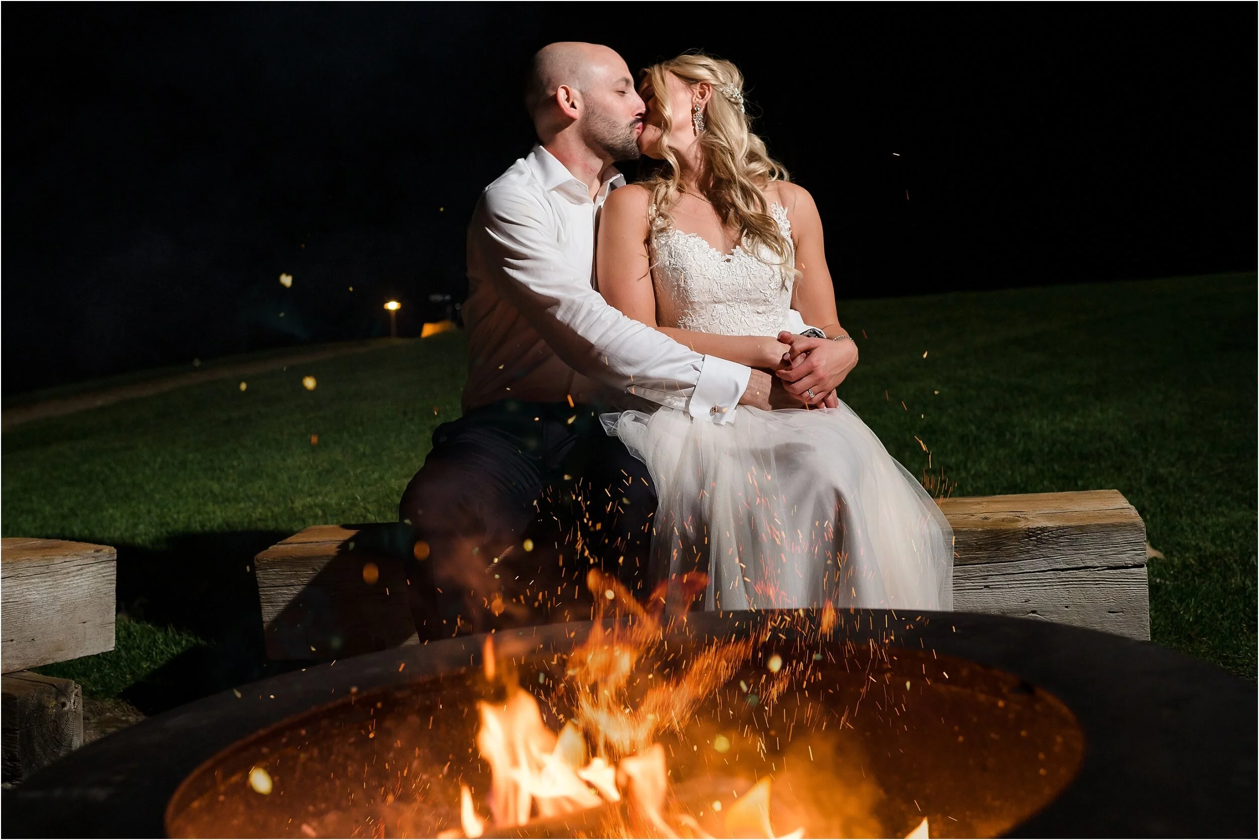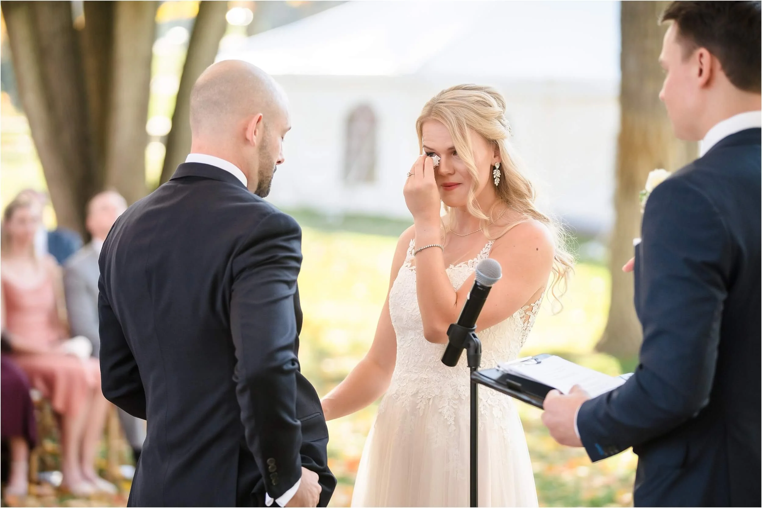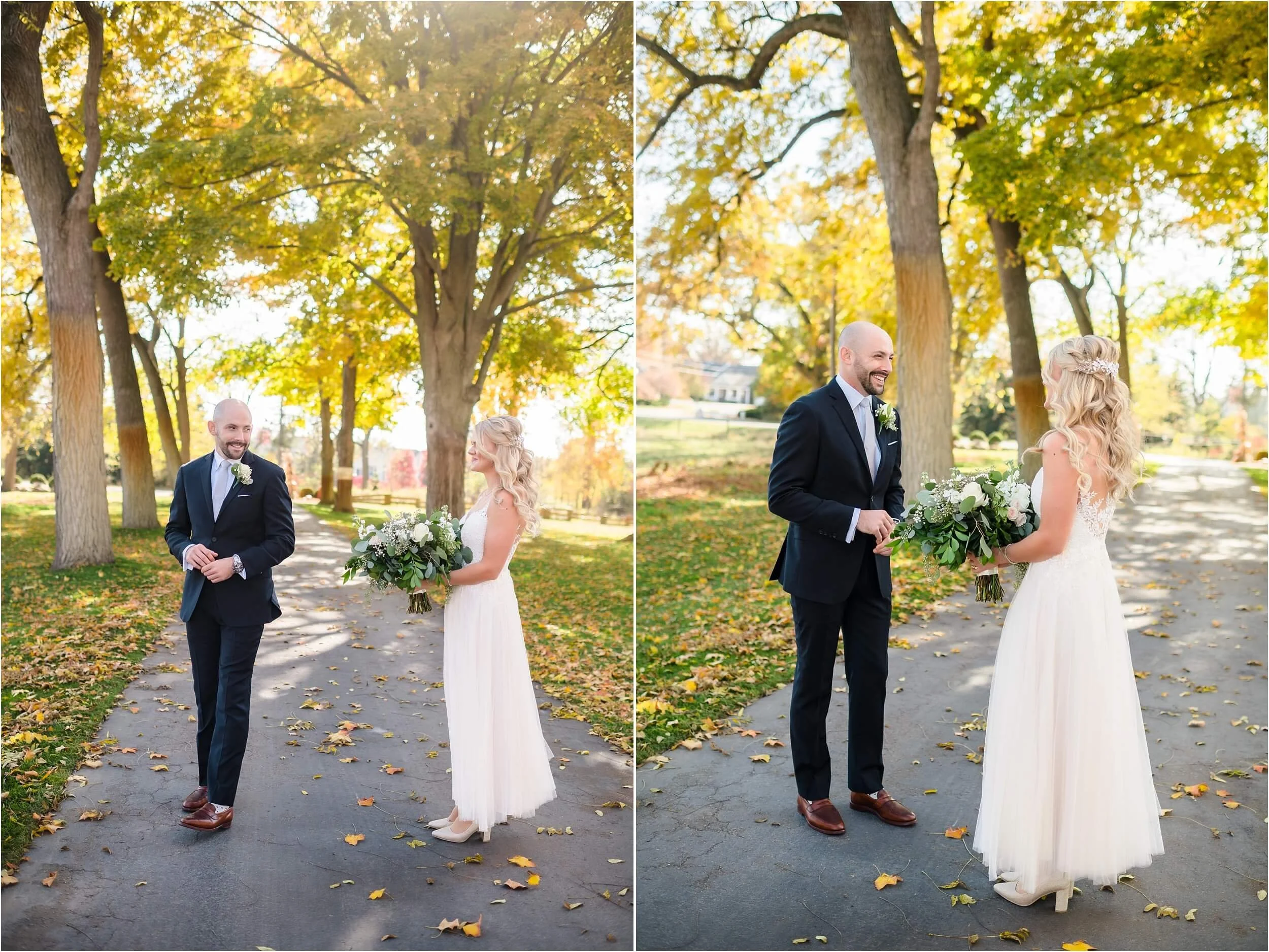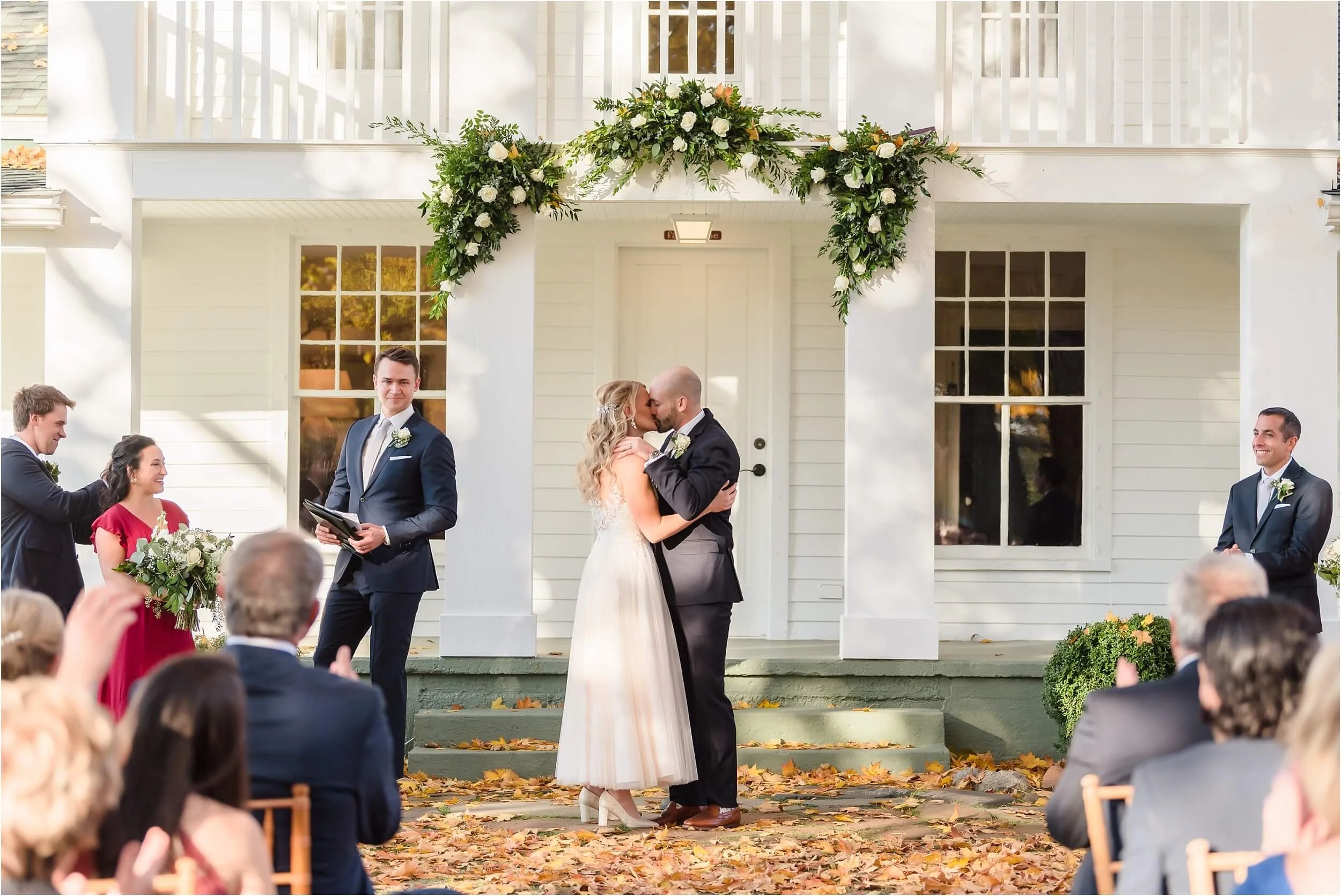 Fall really turned up the charm for this wedding at a gorgeous farmhouse wedding venue near Ann Arbor. M & N’s vows were seriously sweet, and it felt like the whole wedding was strictly about celebrating their love and spending time with the people they cared about most. Following the ceremony, guests were hanging out under the pergola, soaking in that crisp fall air, when – wouldn’t you know it? – a bunch of friendly goats decided to crash the cocktail hour for some extra photo ops and cuddles! As the sun set, a bonfire got crackling, and everyone gathered around to roast marshmallows, swap stories, and gaze up at the stars. As a Ann Arbor wedding photographer, I think barn weddings are the best, and they’re typically some of my favorite venues to photograph at. They’re so full of history and charm, and have that cozy vibe, which is perfect for a fall wedding. Plus, they usually have plenty of space indoors in case of rain (because Michigan weather can be a wild card!). For suggestions on some of my favorite venues in the area, check out this blog post.