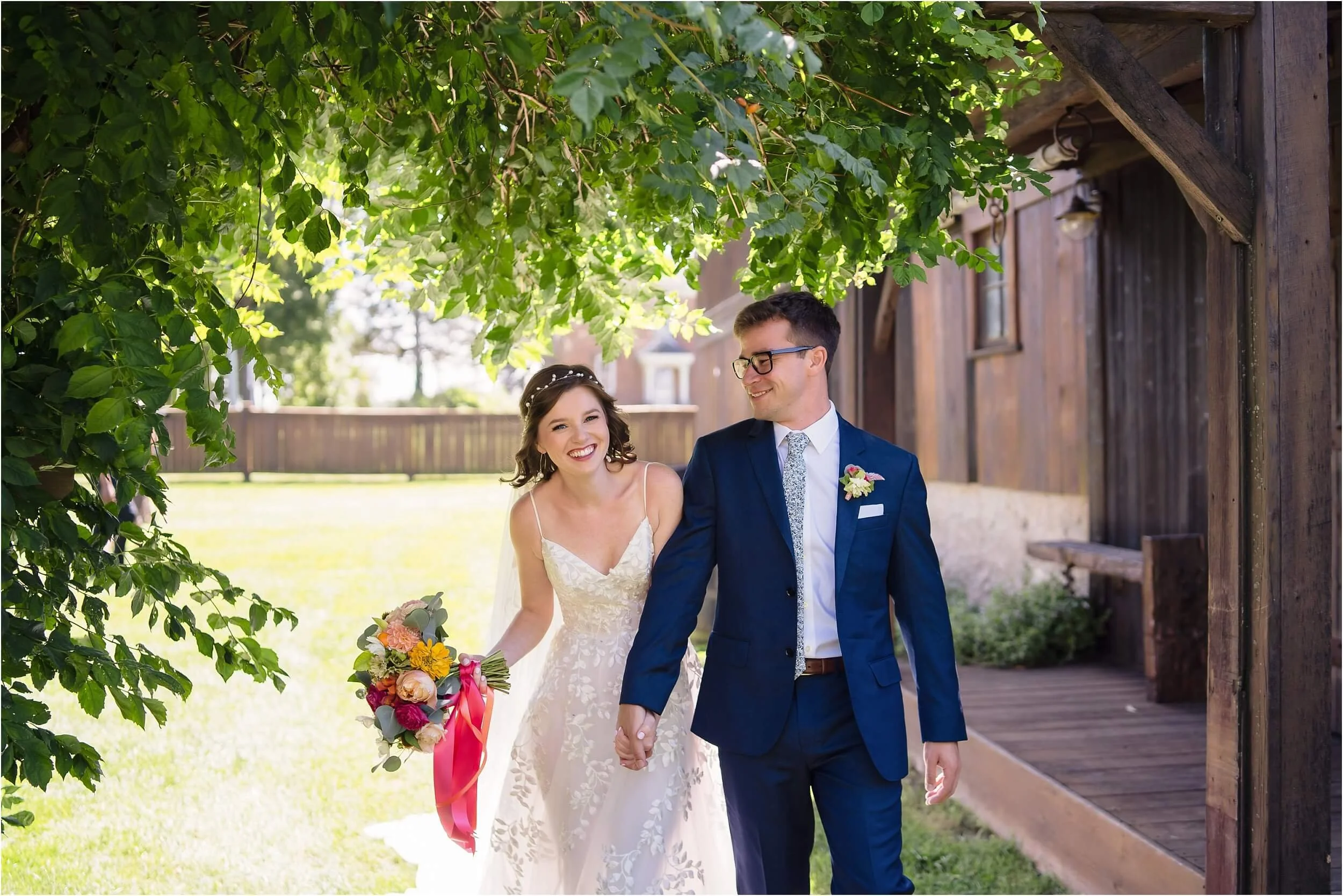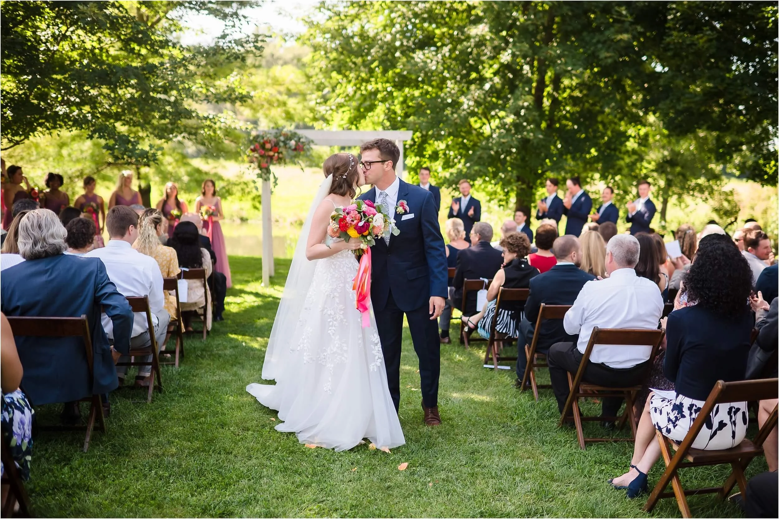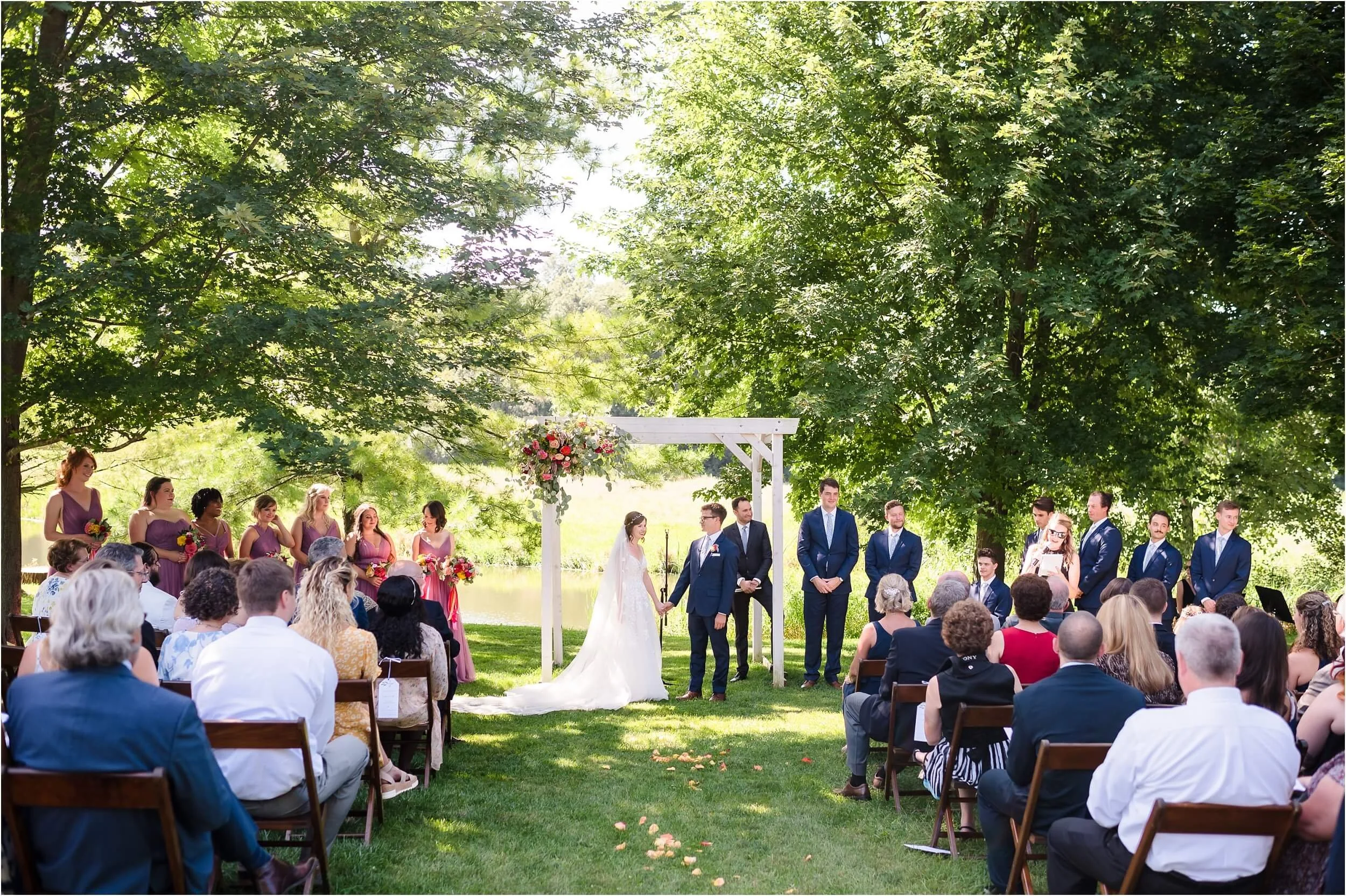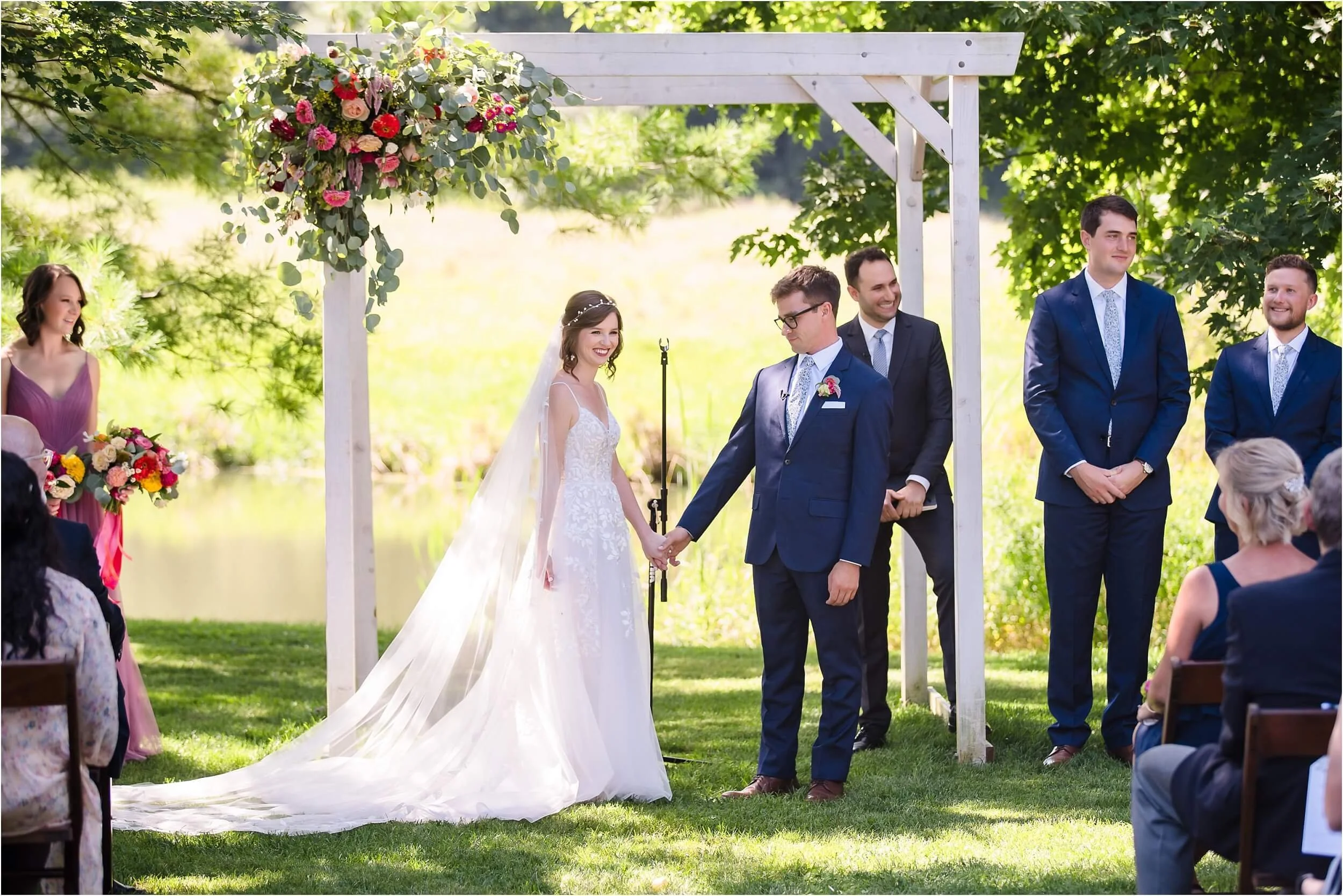 Sunshine and smiles were overflowing at this outdoor summer wedding at Frutig Farms‘ Misty Farms in Ann Arbor! A & N went all out with vibrant, floral decor provided by The Parsonage Events – the bouquets, centerpieces, everything was bursting with color and joy. Ensuring the day went off perfectly, this couple opted to use Ann Arbor day-of coordinator and planner, Luna Soiree Events. A lot of barn venues often require a bit more DIYing (basically bringing in more of your own vendors), so hiring a planner is often a good idea if the idea of this sounds overwhelming.