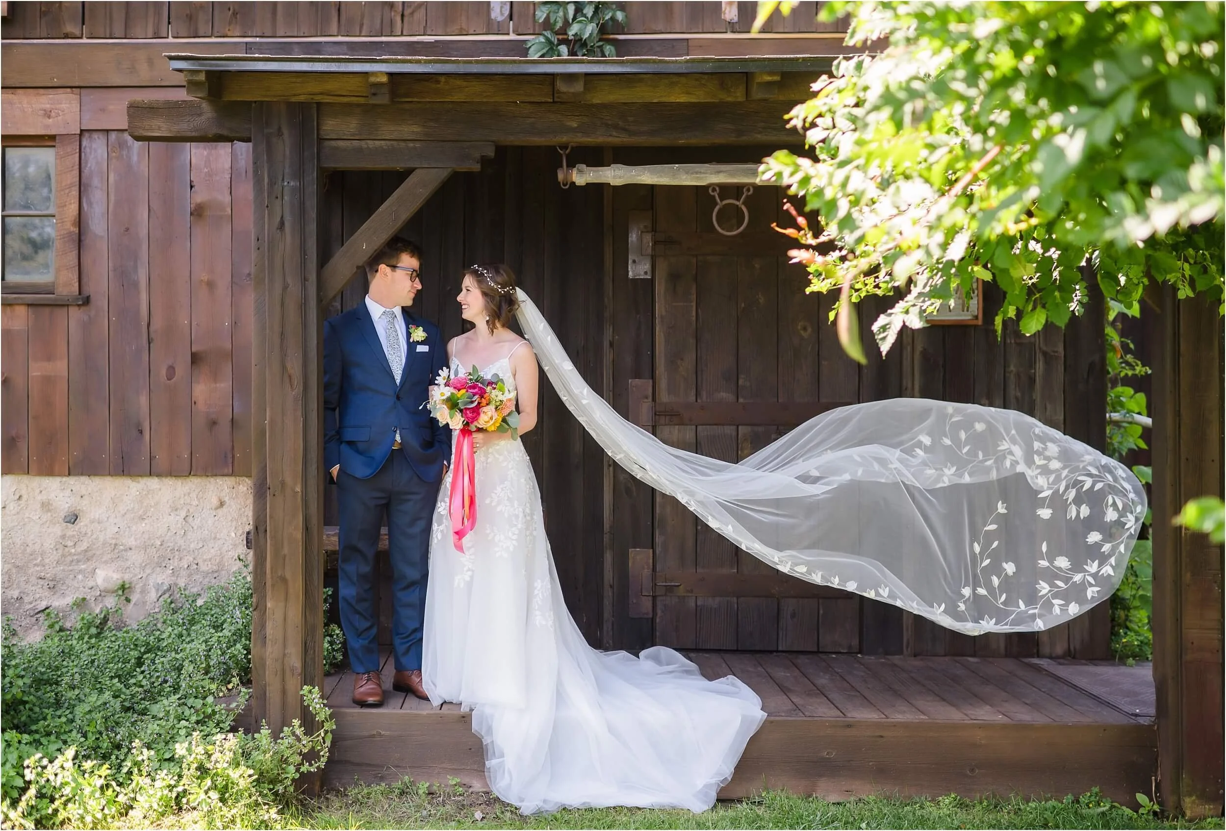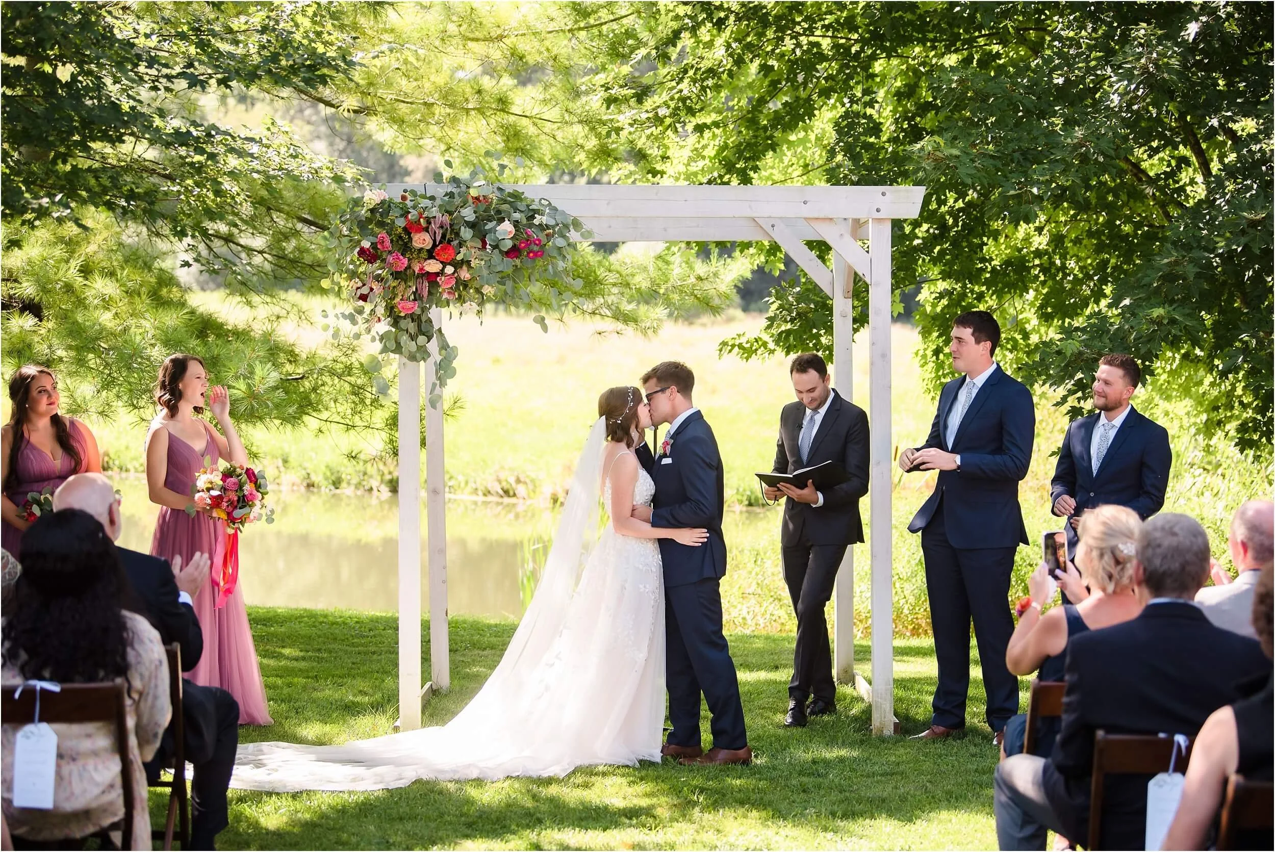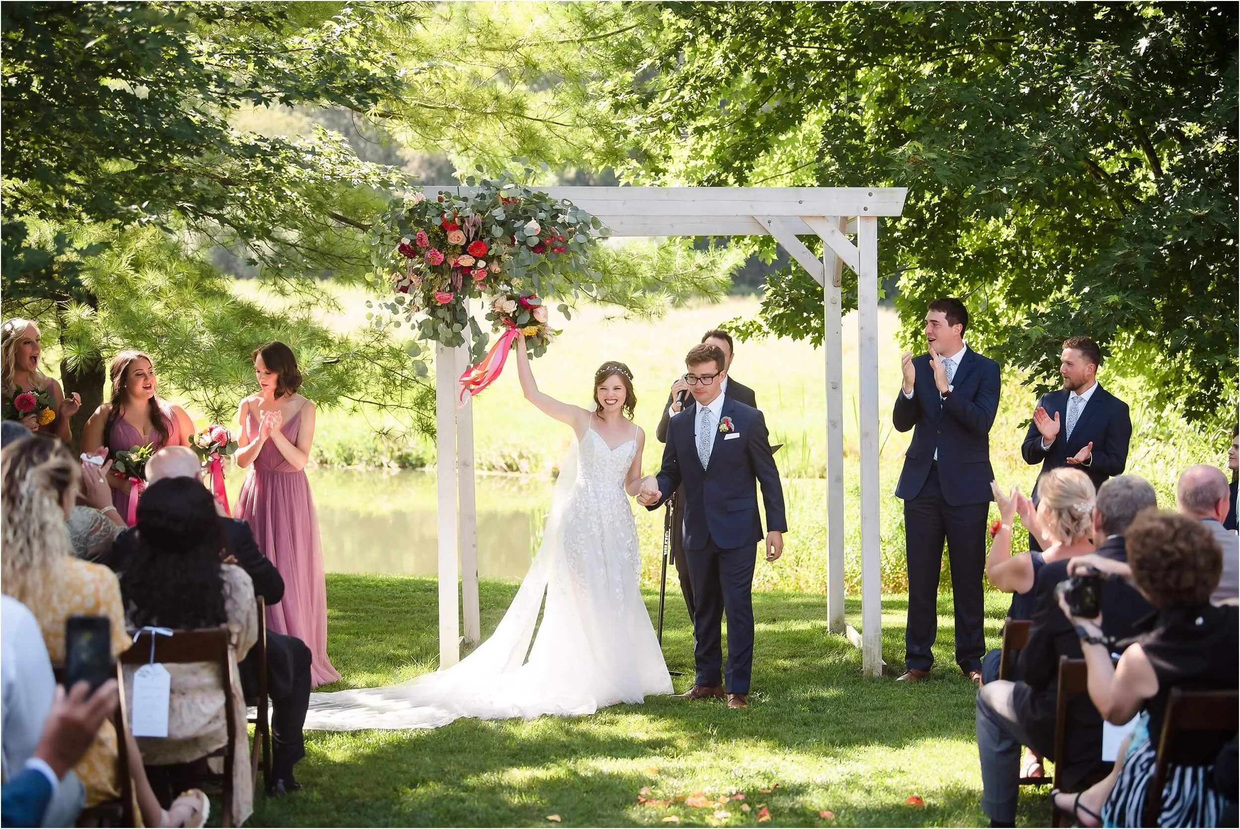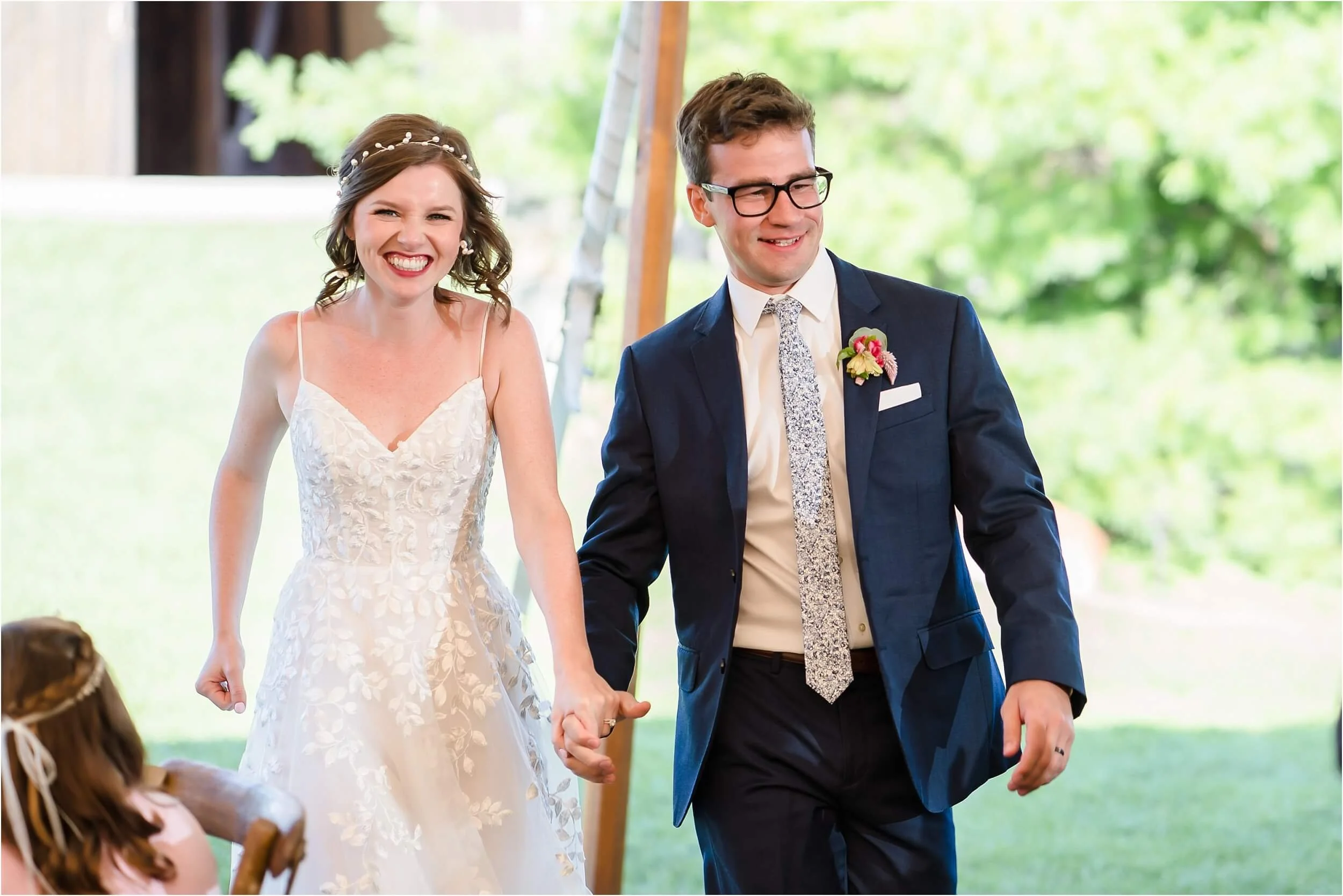 Sunshine and smiles were overflowing at this outdoor summer wedding at Frutig Farms‘ Misty Farms in Ann Arbor! A & N went all out with vibrant, floral decor provided by The Parsonage Events – the bouquets, centerpieces, everything was bursting with color and joy. Ensuring the day went off perfectly, this couple opted to use Ann Arbor day-of coordinator and planner, Luna Soiree Events. A lot of barn venues often require a bit more DIYing (basically bringing in more of your own vendors), so hiring a planner is often a good idea if the idea of this sounds overwhelming.