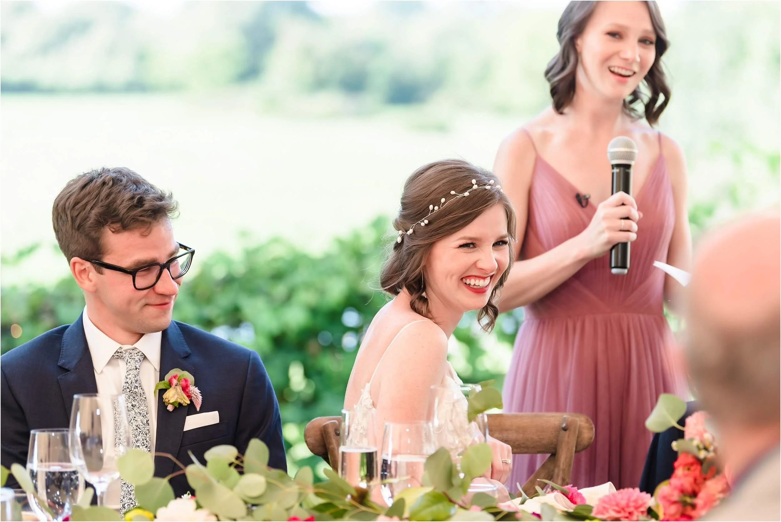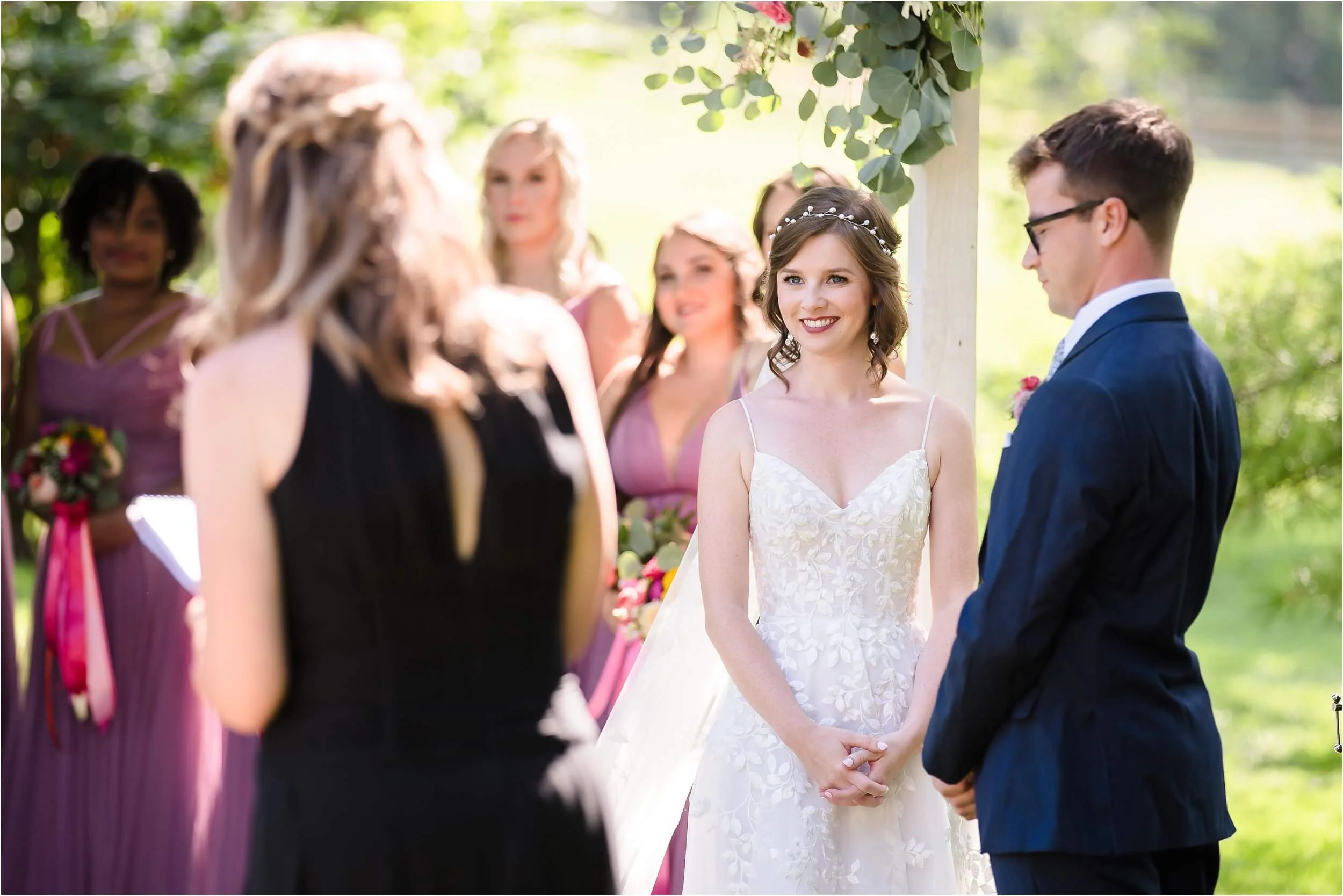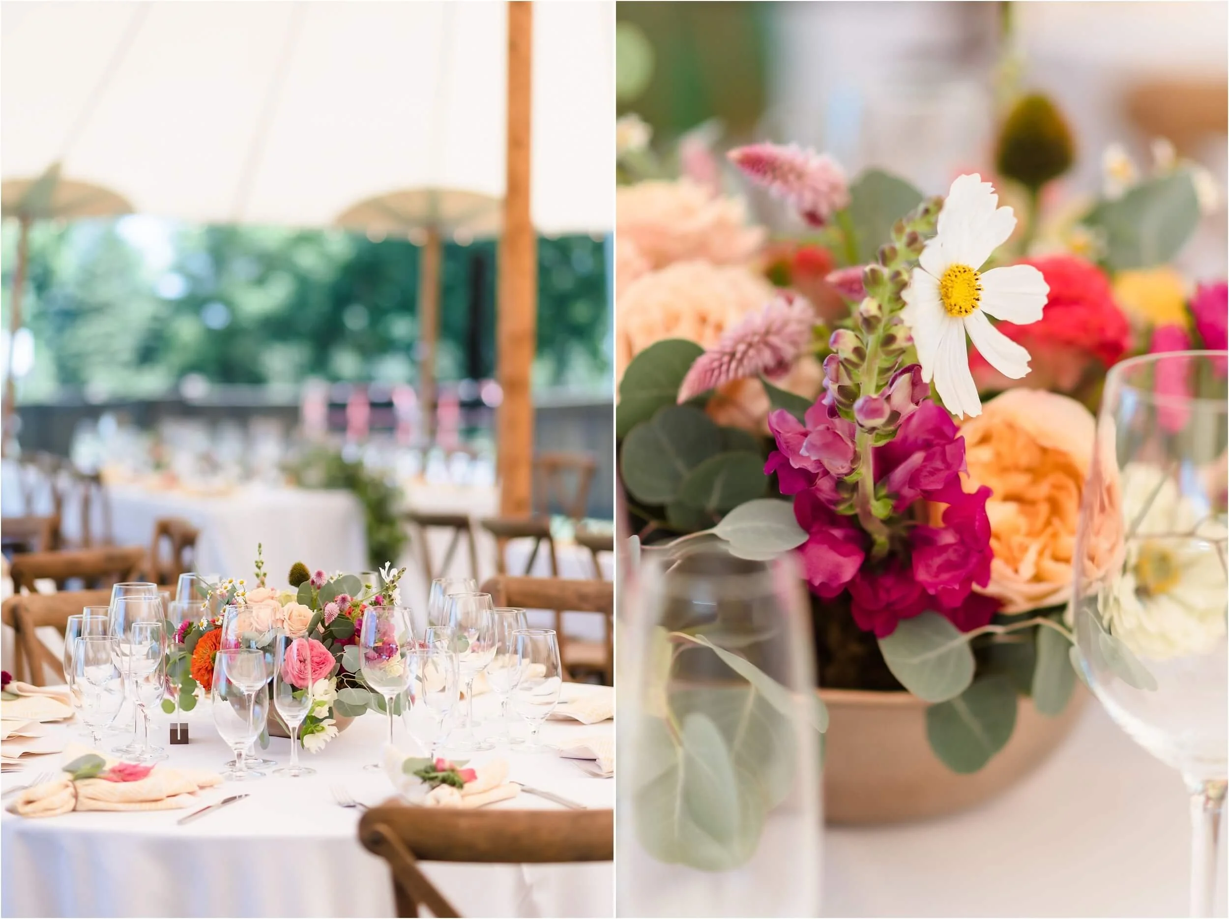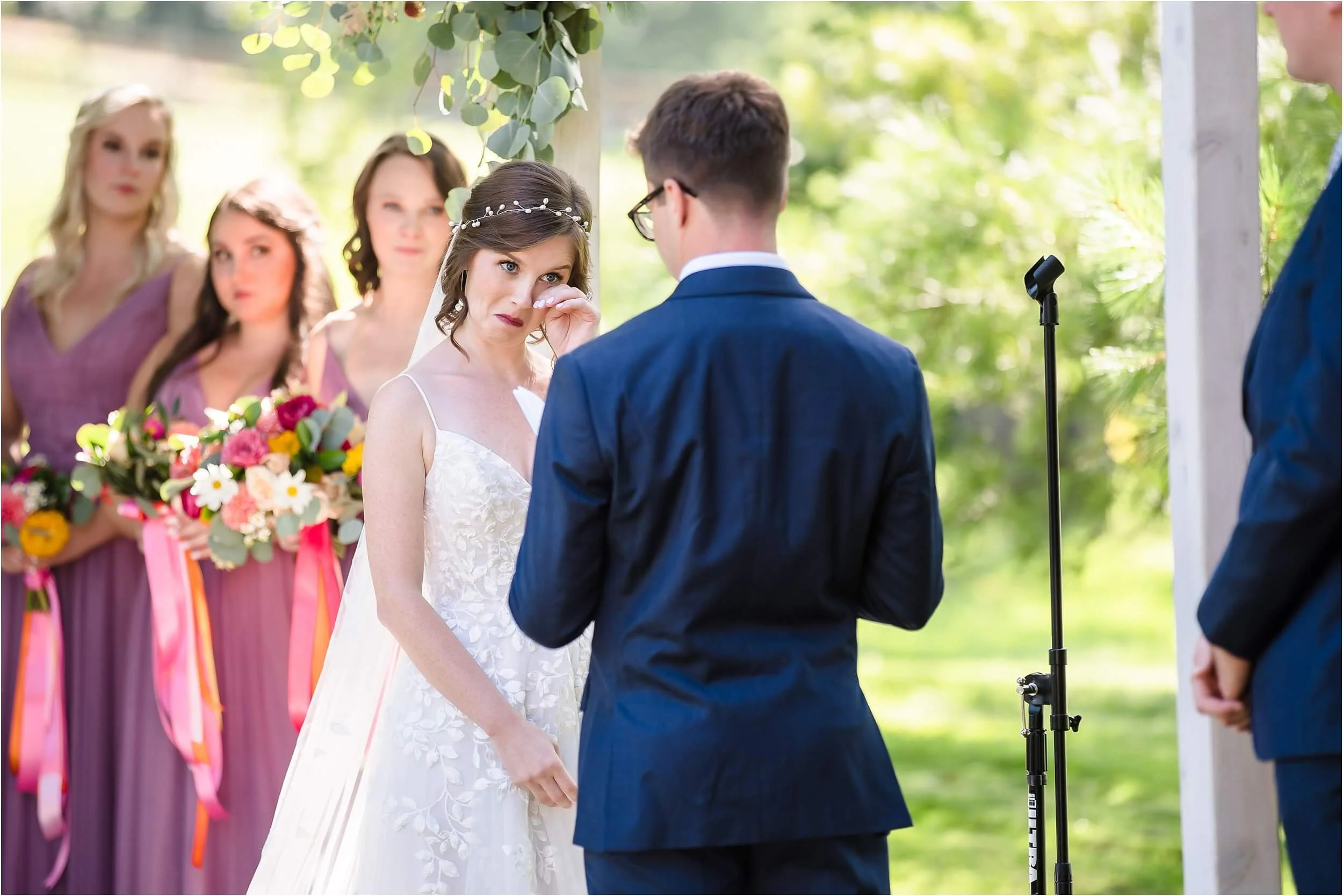 Sunshine and smiles were overflowing at this outdoor summer wedding at Frutig Farms‘ Misty Farms in Ann Arbor! A & N went all out with vibrant, floral decor provided by The Parsonage Events – the bouquets, centerpieces, everything was bursting with color and joy. Ensuring the day went off perfectly, this couple opted to use Ann Arbor day-of coordinator and planner, Luna Soiree Events. A lot of barn venues often require a bit more DIYing (basically bringing in more of your own vendors), so hiring a planner is often a good idea if the idea of this sounds overwhelming.