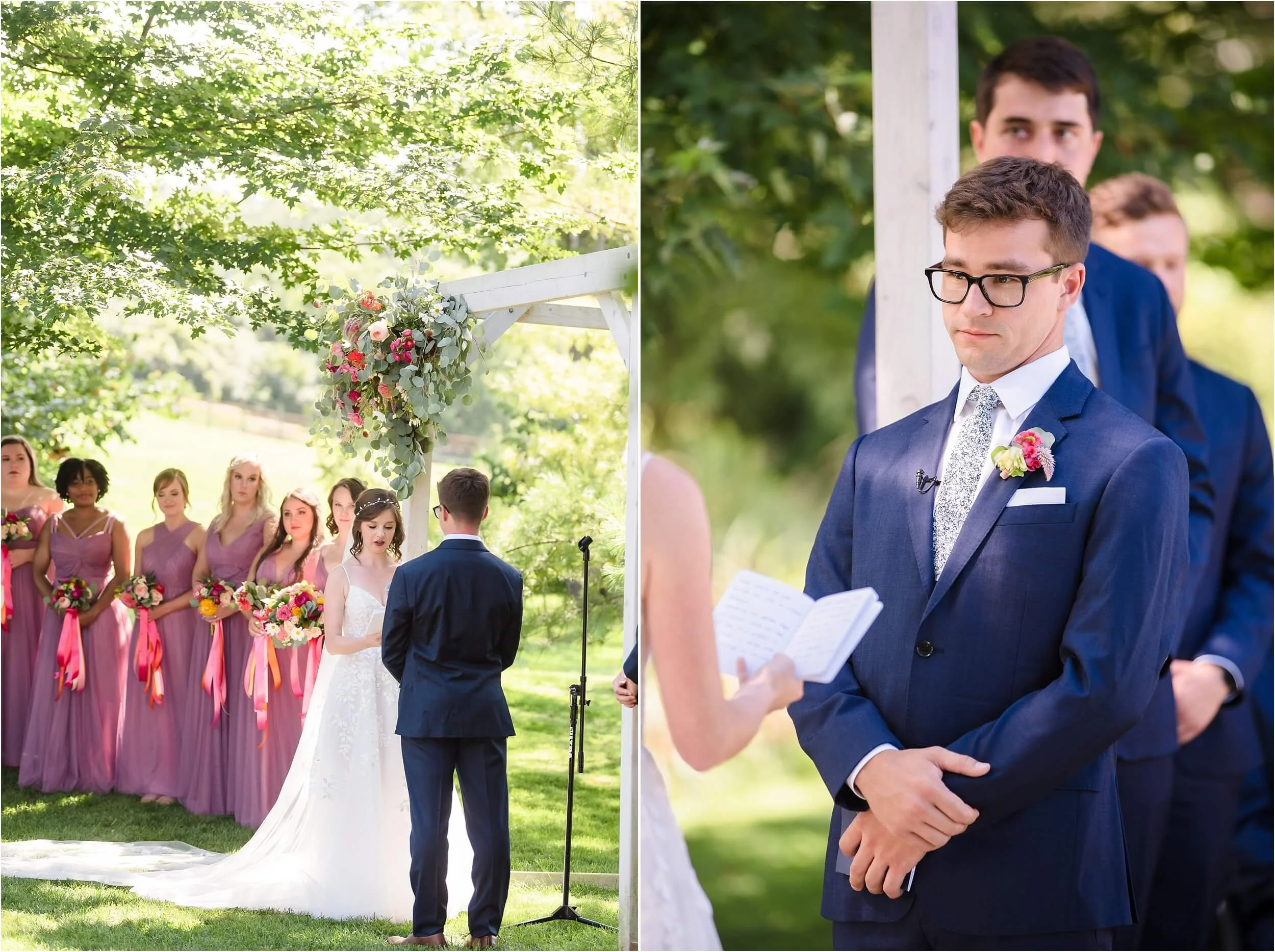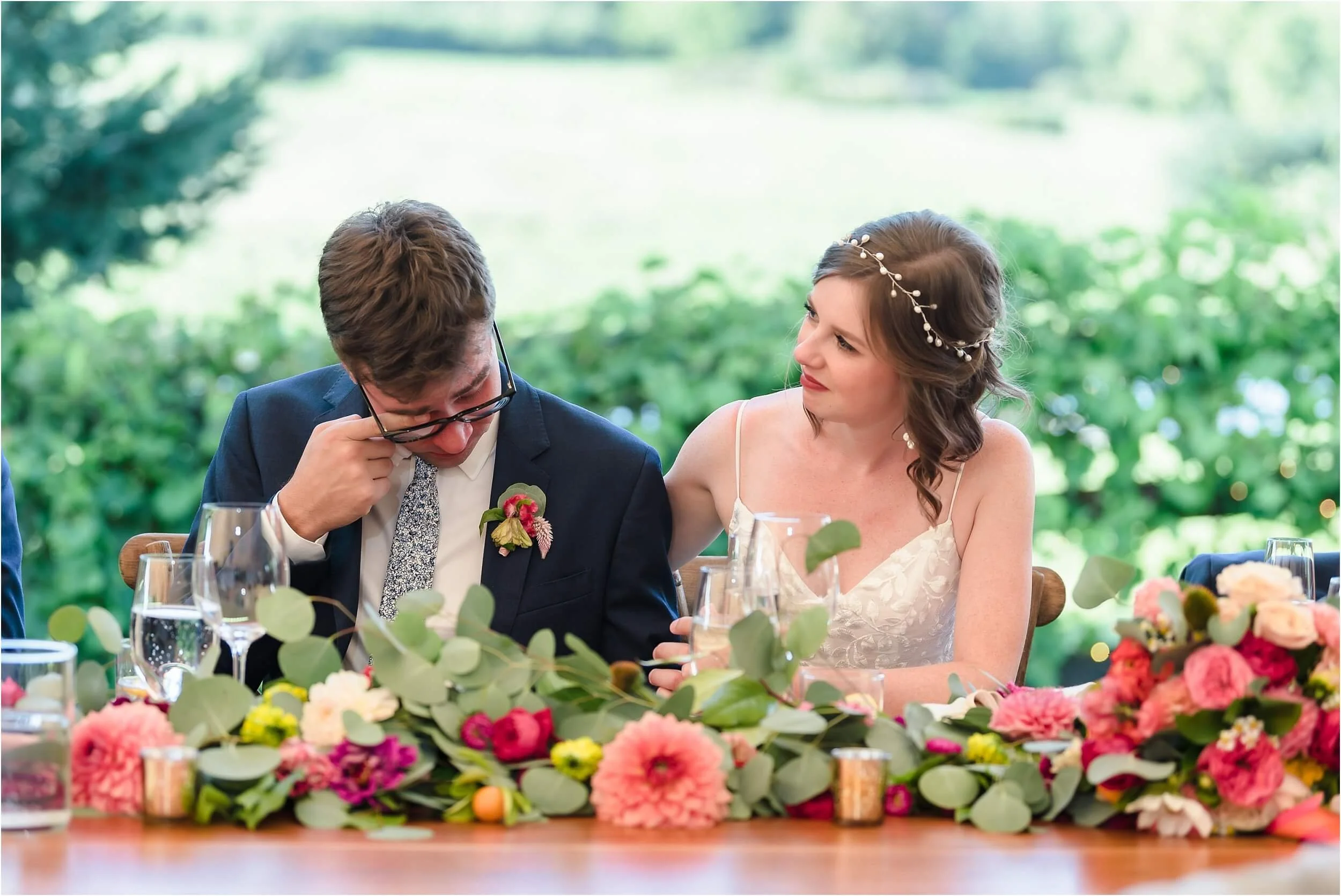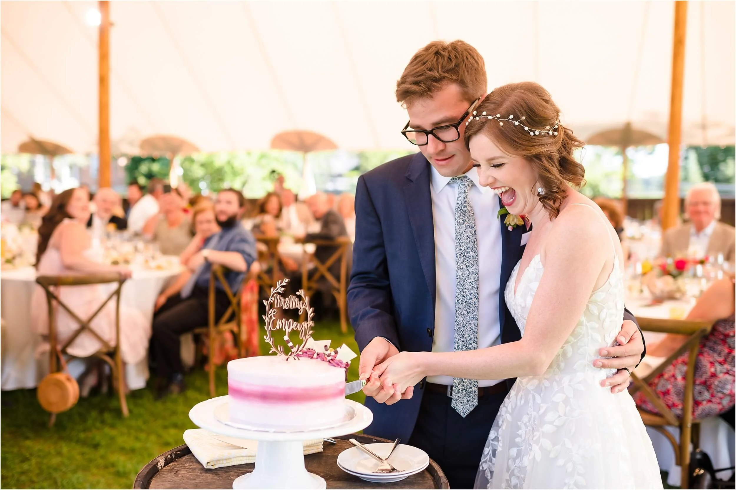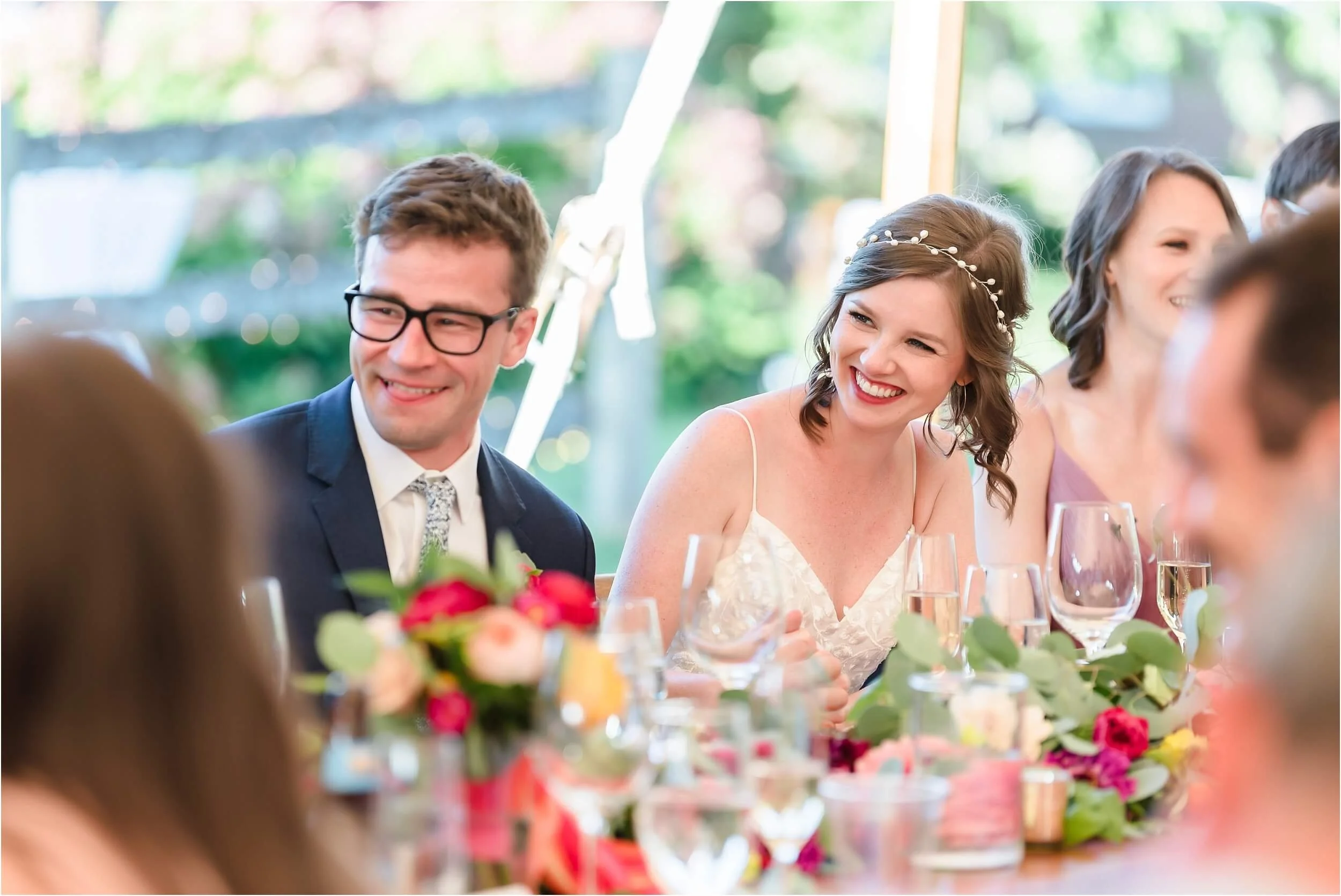 Sunshine and smiles were overflowing at this outdoor summer wedding at Frutig Farms‘ Misty Farms in Ann Arbor! A & N went all out with vibrant, floral decor provided by The Parsonage Events – the bouquets, centerpieces, everything was bursting with color and joy. Ensuring the day went off perfectly, this couple opted to use Ann Arbor day-of coordinator and planner, Luna Soiree Events. A lot of barn venues often require a bit more DIYing (basically bringing in more of your own vendors), so hiring a planner is often a good idea if the idea of this sounds overwhelming.