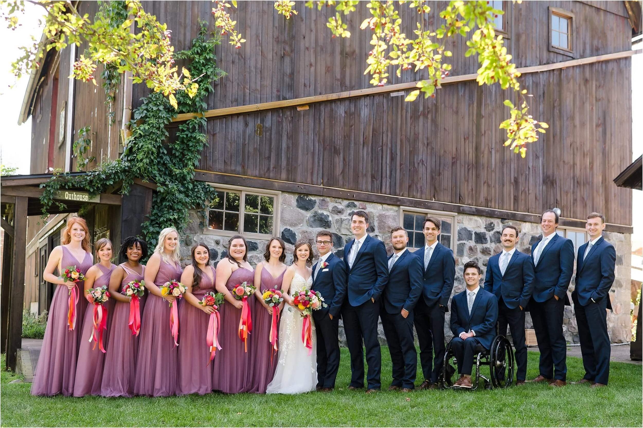 A & N opted for a sweet first look moment in front of the barn, which was pure magic to capture, and we made sure to carve out plenty of time for photos with their fun-loving wedding party. With so many places to go for photos around Frutig Farms, It’s important to schedule a bit of extra time there so we can utilize the venue to its full potential.