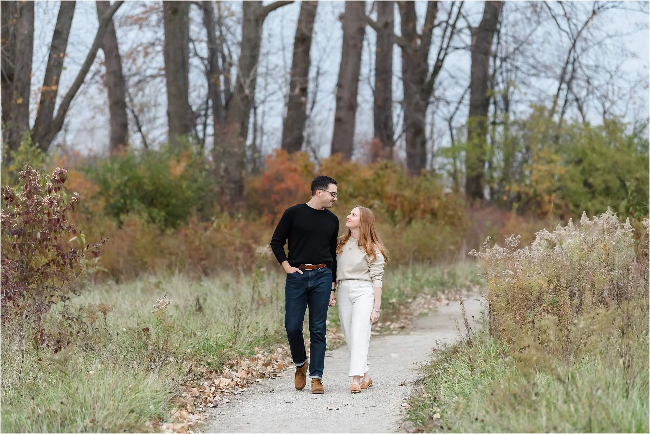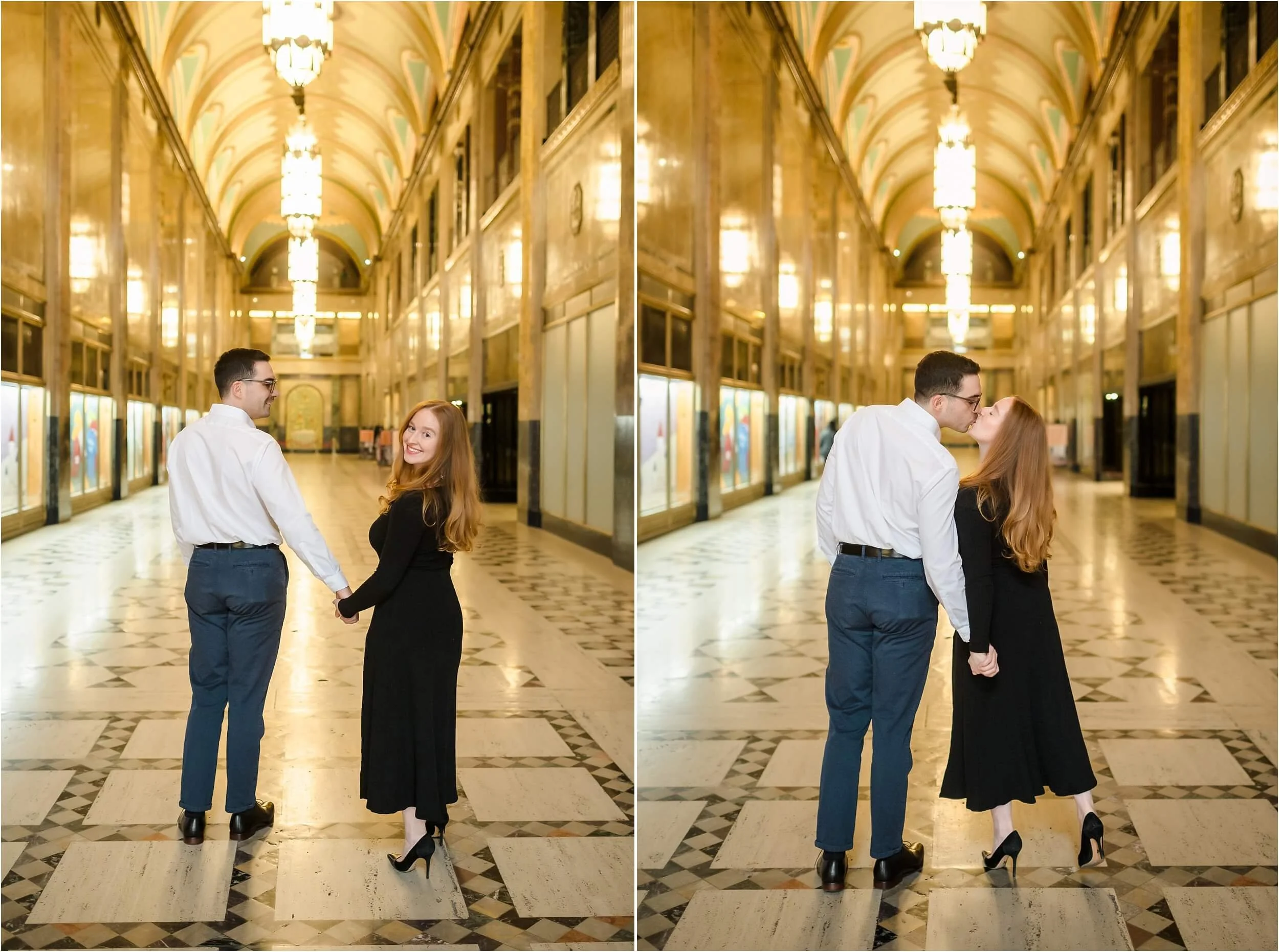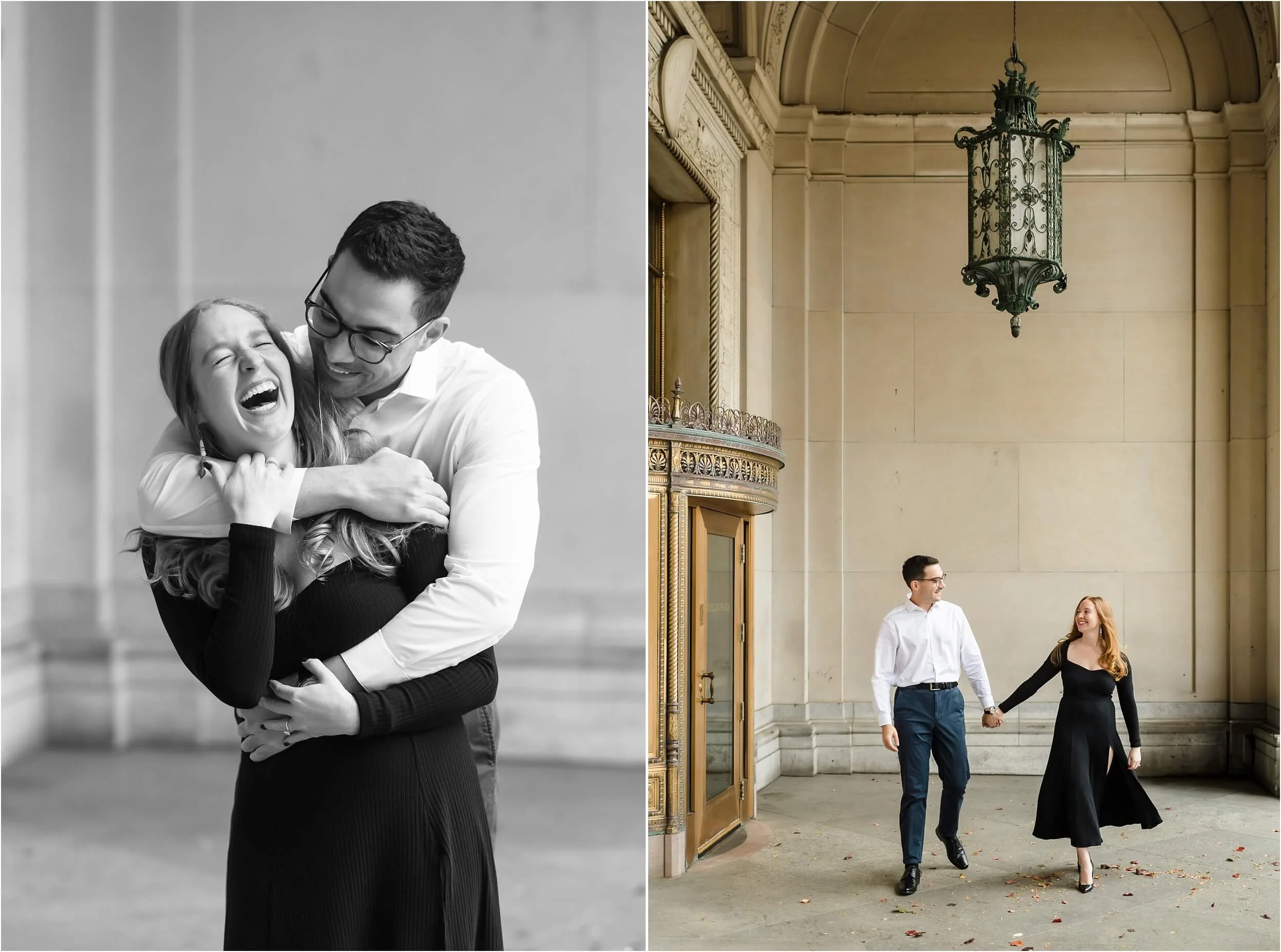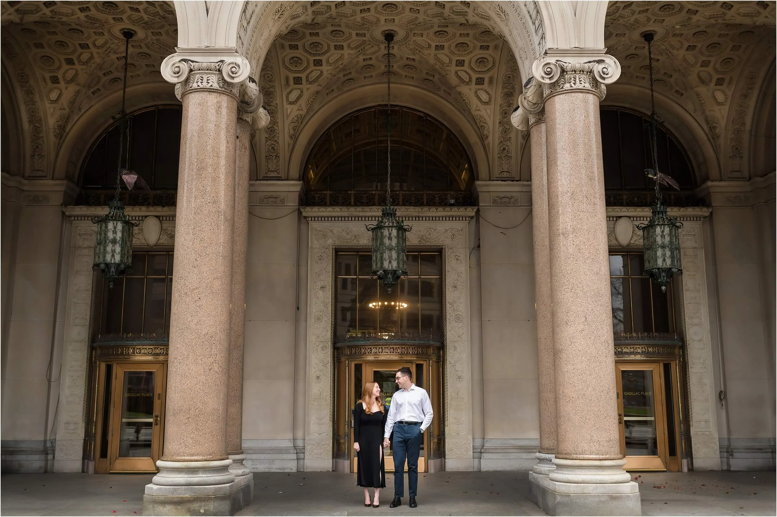 Detroit dreaming for your engagement session? This couple totally nailed it with a combo of New Center’s modern vibes and Belle Isle’s natural beauty! Forget the usual spots like the Z lot and the River Walk – New Center is where it’s at. The Fisher Building is one of my new favorites, with its gorgeous Art Deco details adding some serious wow-factor. Cadillac Place across the street also provides some great historic vibes. Bonus: both locations have handy overhangs or indoor hallways, so a little rain won’t ruin your photos! No Detroit engagement session is complete without Belle Isle, though. This island park is a dream, with options galore. While the Anna Scripps Whitcomb Conservatory is currently under construction (until 2025), there are other great places to go like the lighthouse trails and the greenhouses next to the Belle Isle Aquarium.