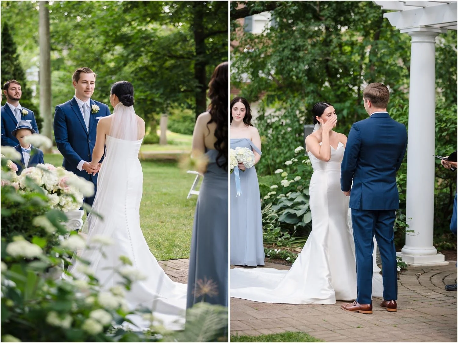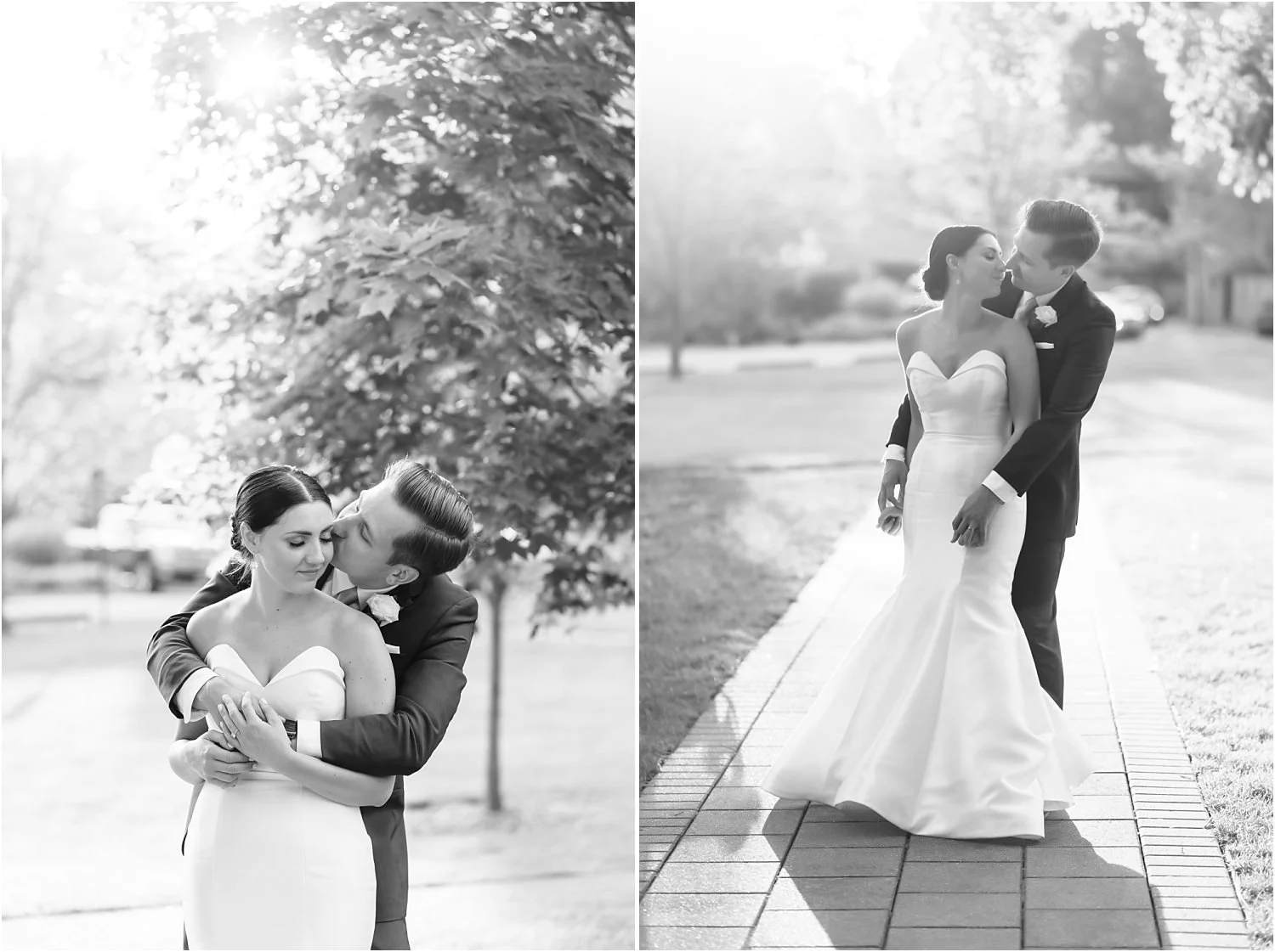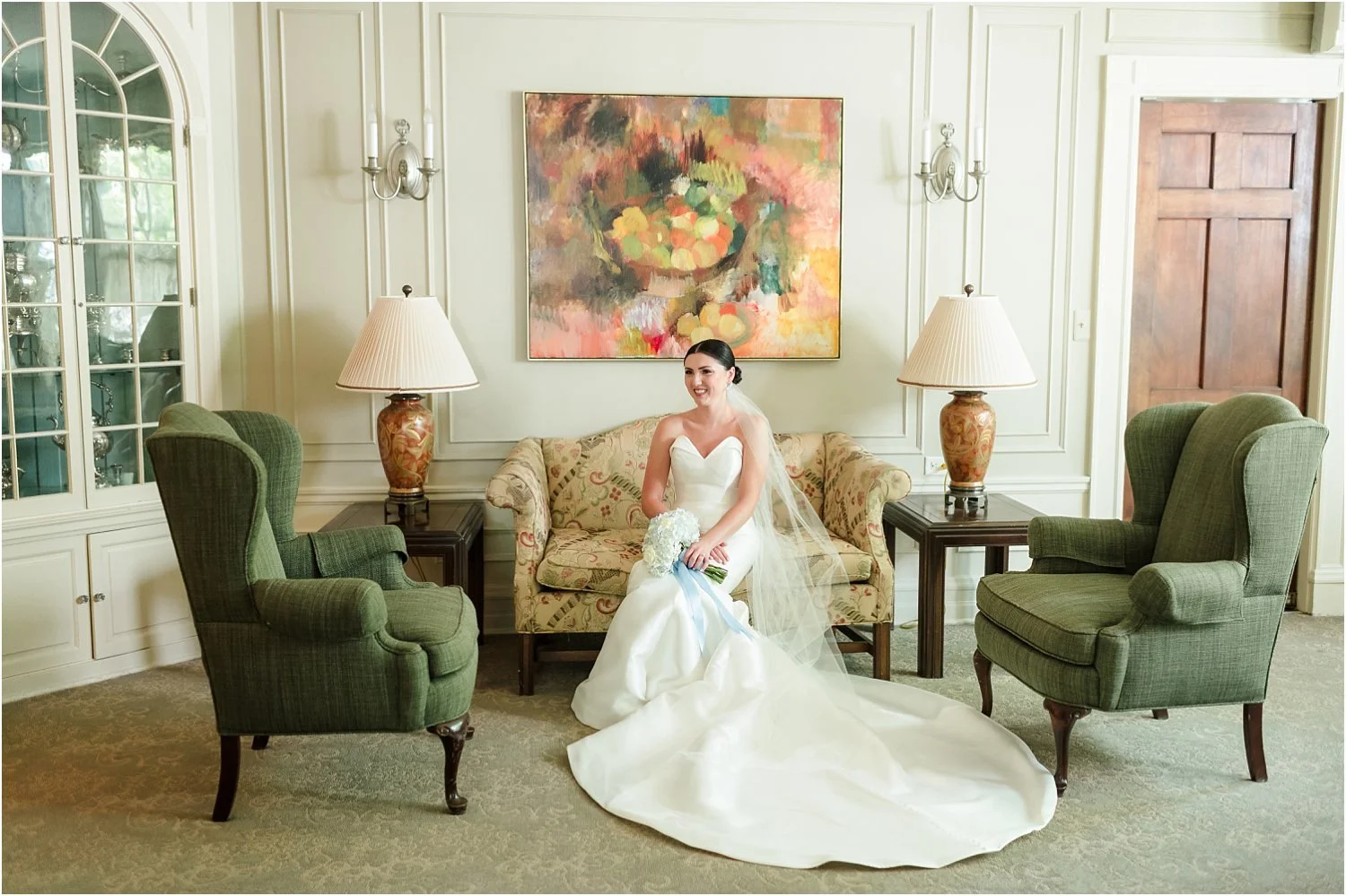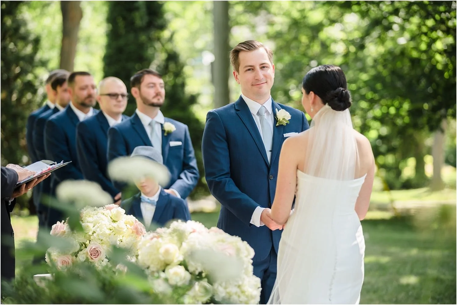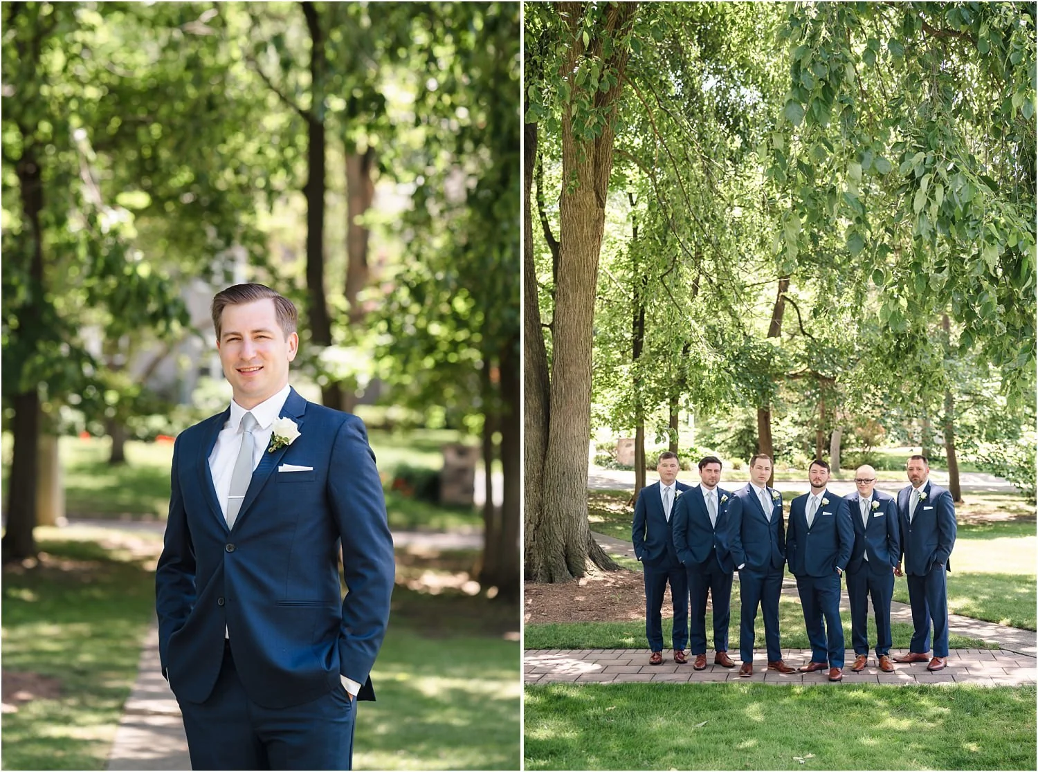 Talk about a picture-perfect summer wedding! The Ann Arbor City Club looked like it was straight out of a fairytale with the sun streaming through the trees at the ceremony. T totally stole the show with her fitted modern gown and her cathedral veil – it was an amazing contrast to this historic venue. T & D also chose a perfect color scheme, blue, blush, and white, and it matched the exterior of the building perfectly. I love little touches like that- thoughtful details really make each wedding so unique. As a Ann Arbor wedding photographer, this is probably my favorite venue in Ann Arbor proper just due to it’s historic charm and proximity to campus.
