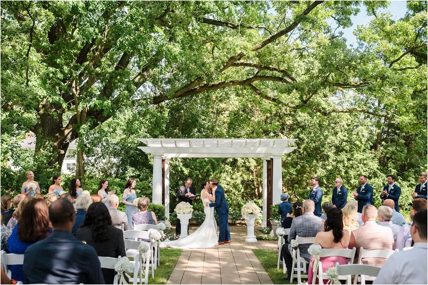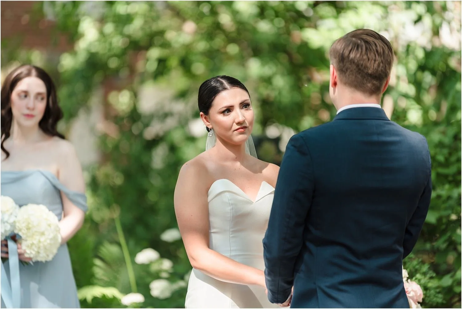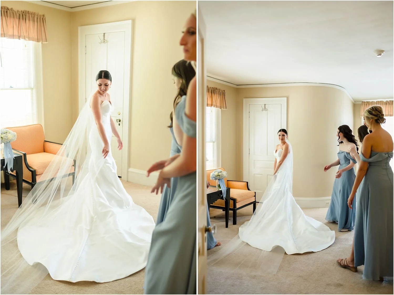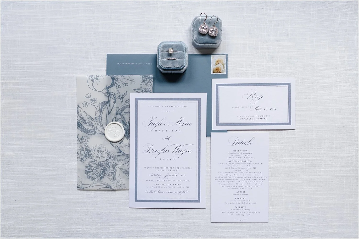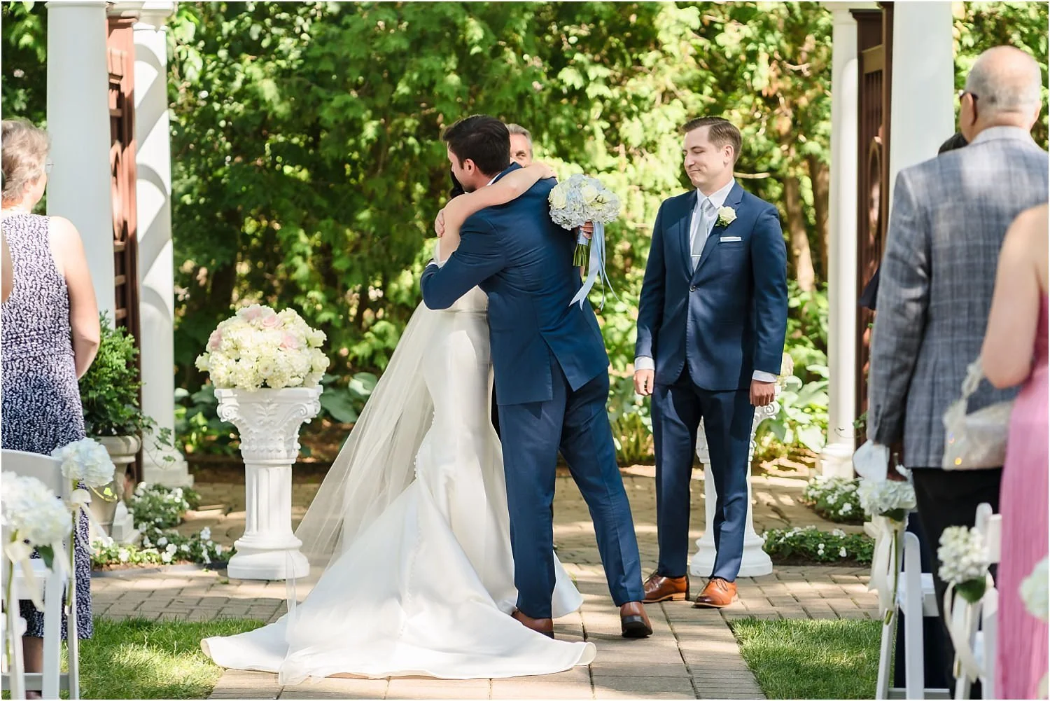Talk about a picture-perfect summer wedding! The Ann Arbor City Club looked like it was straight out of a fairytale with the sun streaming through the trees at the ceremony. T totally stole the show with her fitted modern gown and her cathedral veil – it was an amazing contrast to this historic venue. T & D also chose a perfect color scheme, blue, blush, and white, and it matched the exterior of the building perfectly. I love little touches like that- thoughtful details really make each wedding so unique. As a Ann Arbor wedding photographer, this is probably my favorite venue in Ann Arbor proper just due to it’s historic charm and proximity to campus.