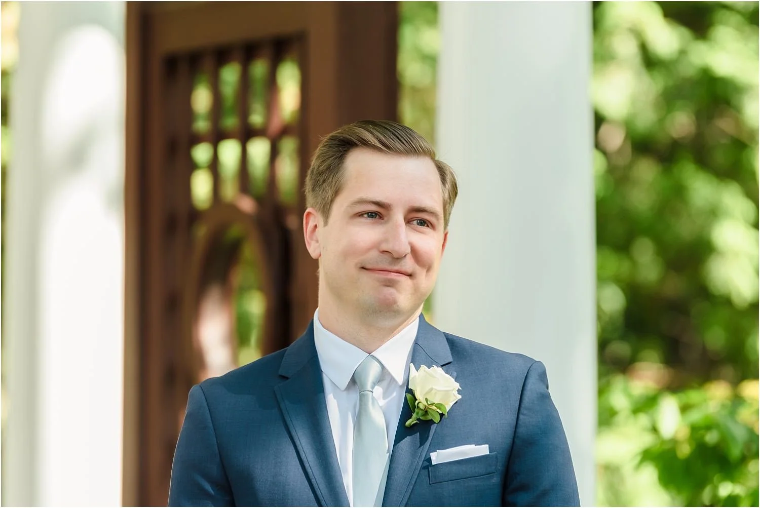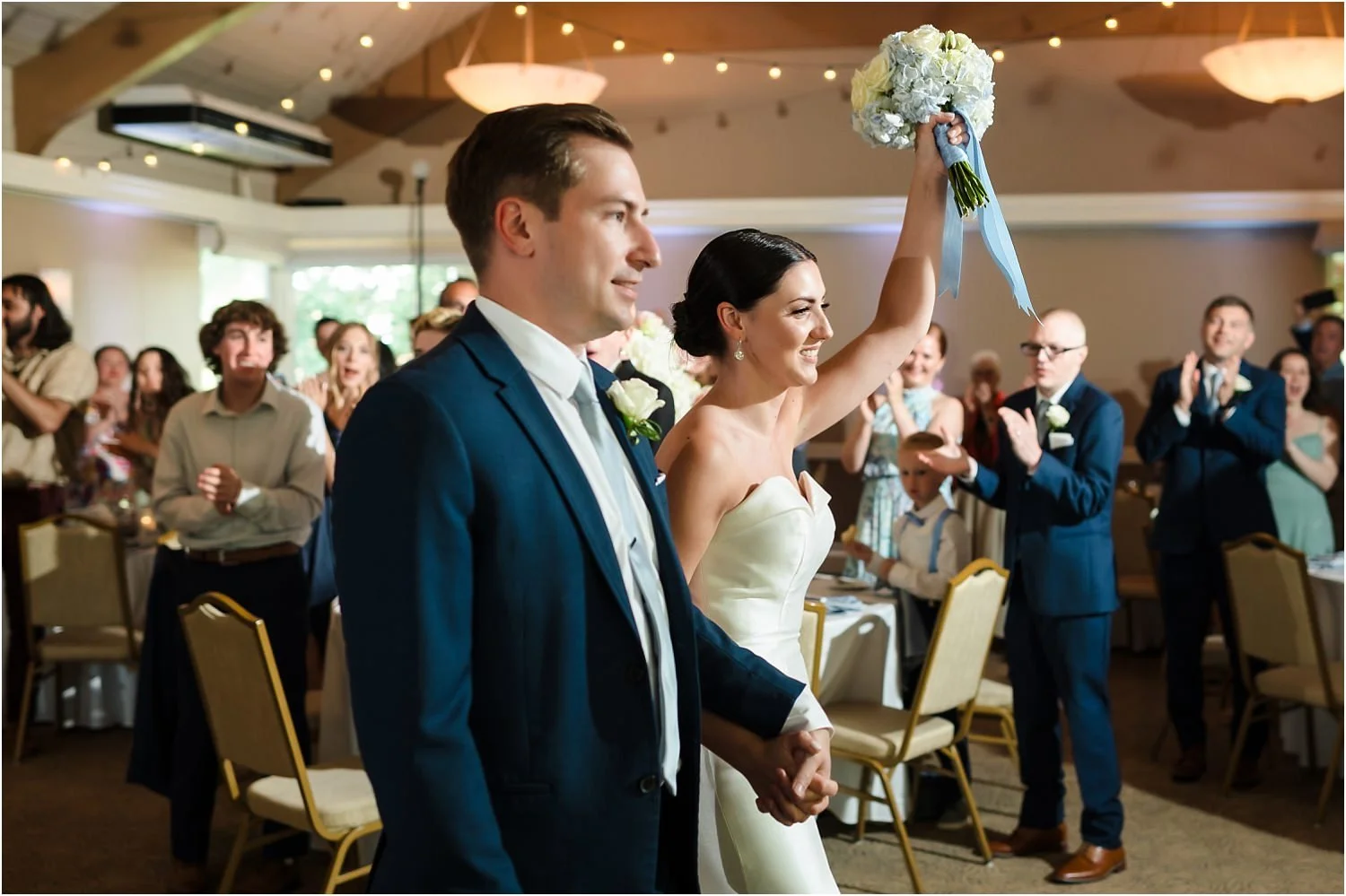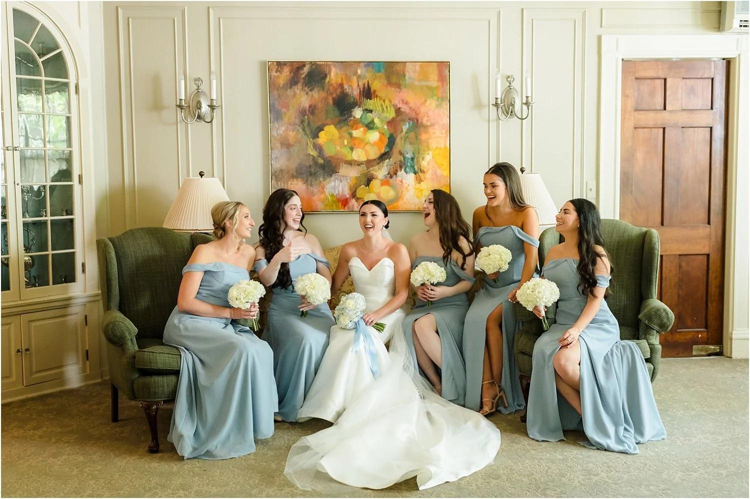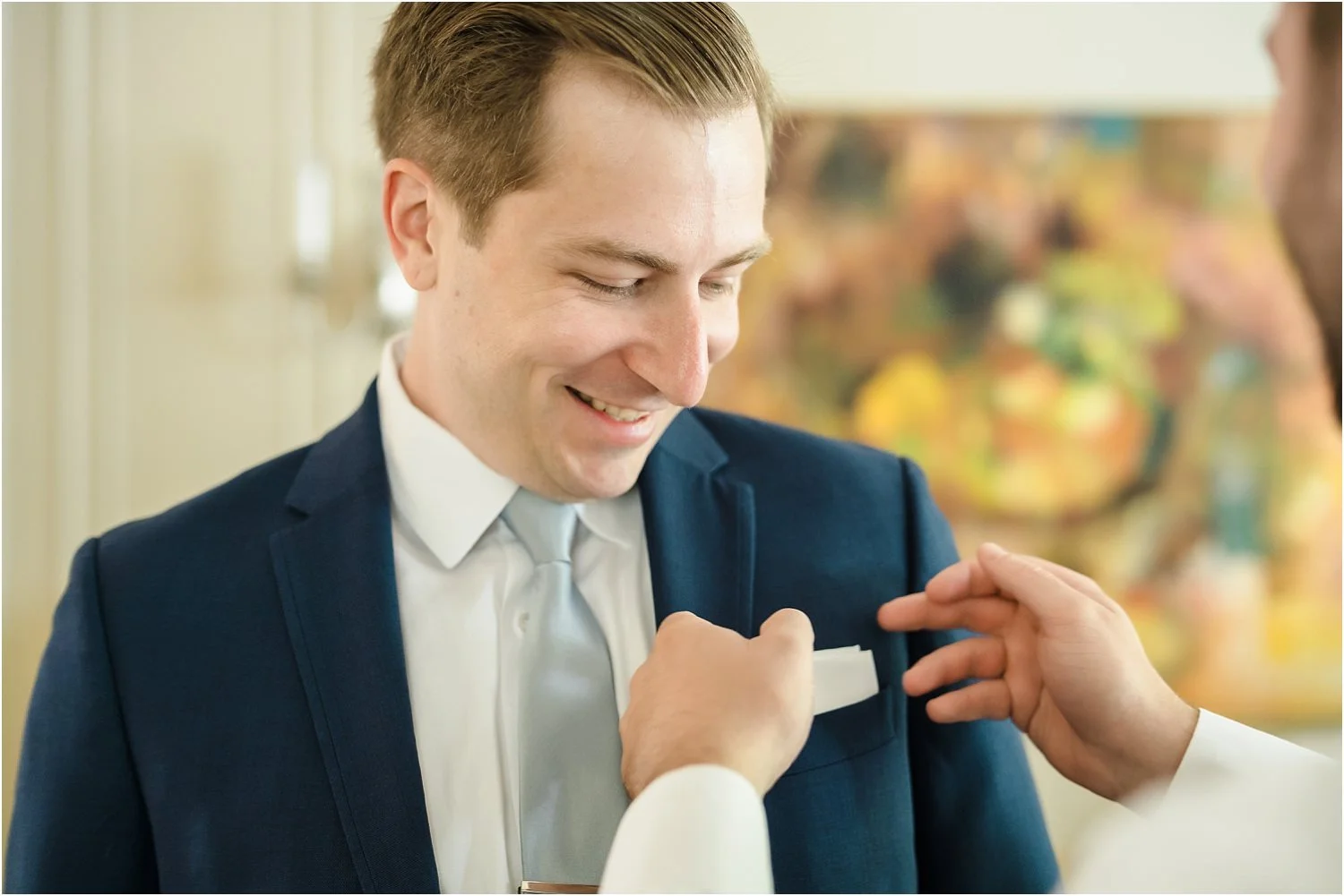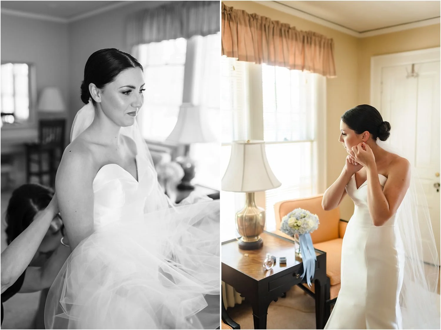 Talk about a picture-perfect summer wedding! The Ann Arbor City Club looked like it was straight out of a fairytale with the sun streaming through the trees at the ceremony. T totally stole the show with her fitted modern gown and her cathedral veil – it was an amazing contrast to this historic venue. T & D also chose a perfect color scheme, blue, blush, and white, and it matched the exterior of the building perfectly. I love little touches like that- thoughtful details really make each wedding so unique. As a Ann Arbor wedding photographer, this is probably my favorite venue in Ann Arbor proper just due to it’s historic charm and proximity to campus.