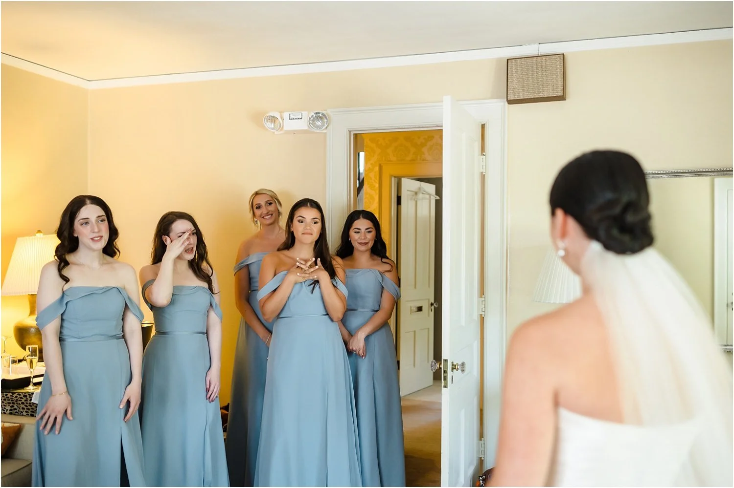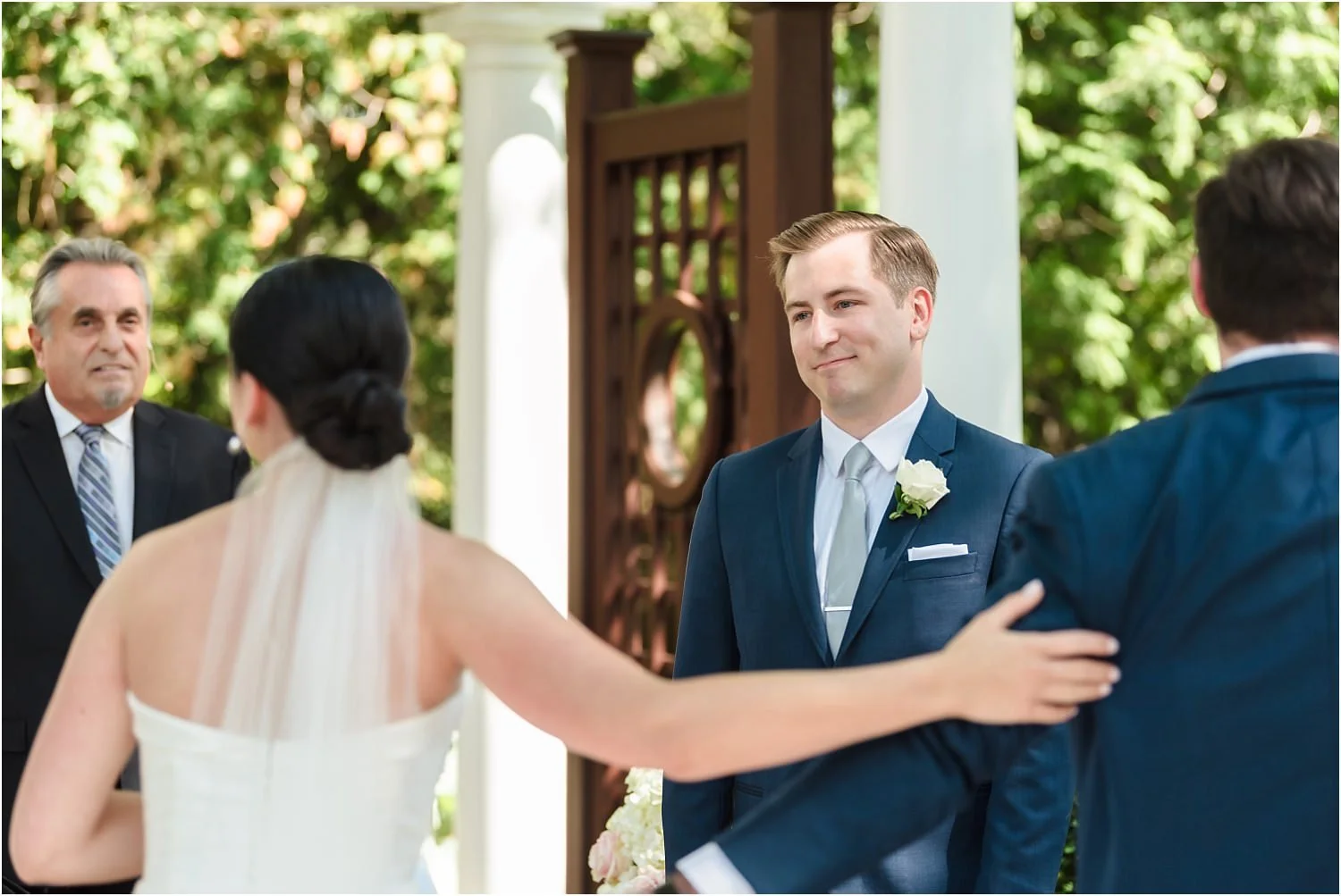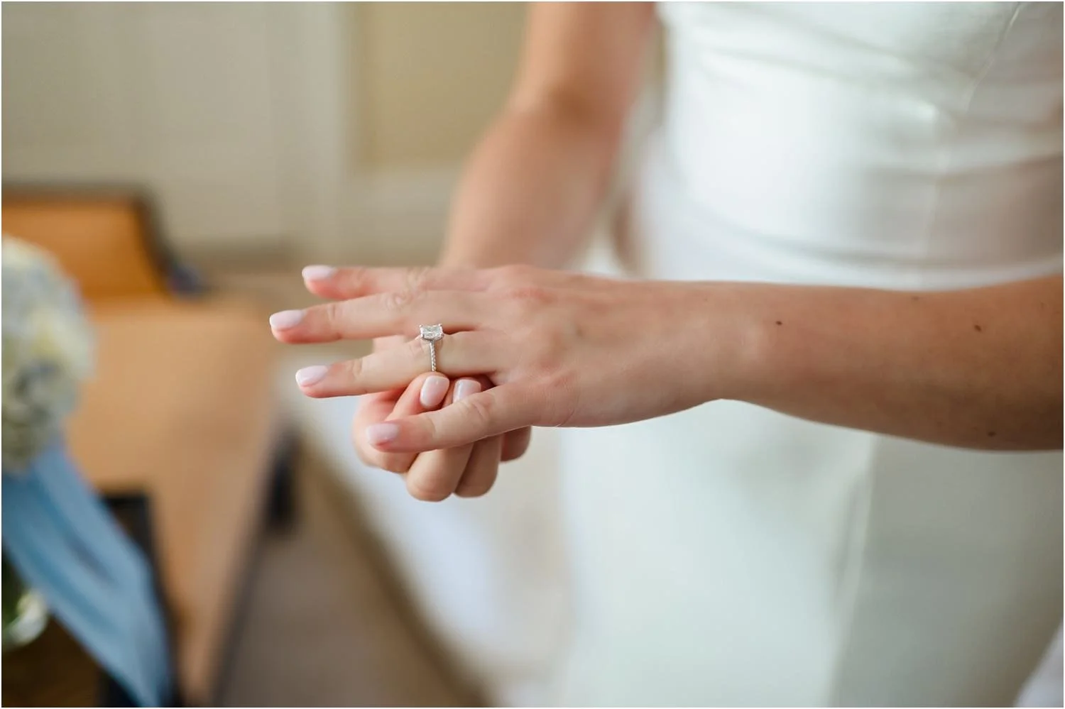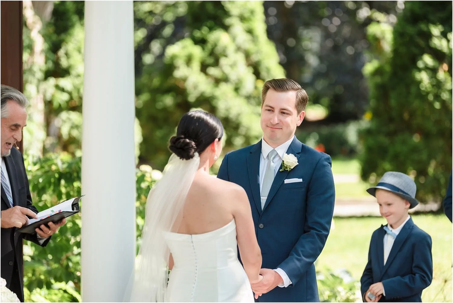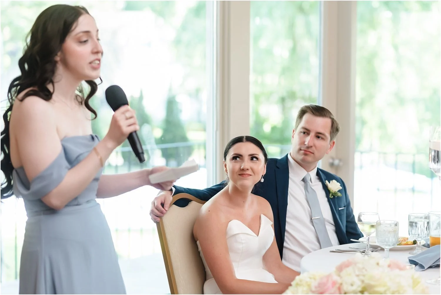 Talk about a picture-perfect summer wedding! The Ann Arbor City Club looked like it was straight out of a fairytale with the sun streaming through the trees at the ceremony. T totally stole the show with her fitted modern gown and her cathedral veil – it was an amazing contrast to this historic venue. T & D also chose a perfect color scheme, blue, blush, and white, and it matched the exterior of the building perfectly. I love little touches like that- thoughtful details really make each wedding so unique. As a Ann Arbor wedding photographer, this is probably my favorite venue in Ann Arbor proper just due to it’s historic charm and proximity to campus.