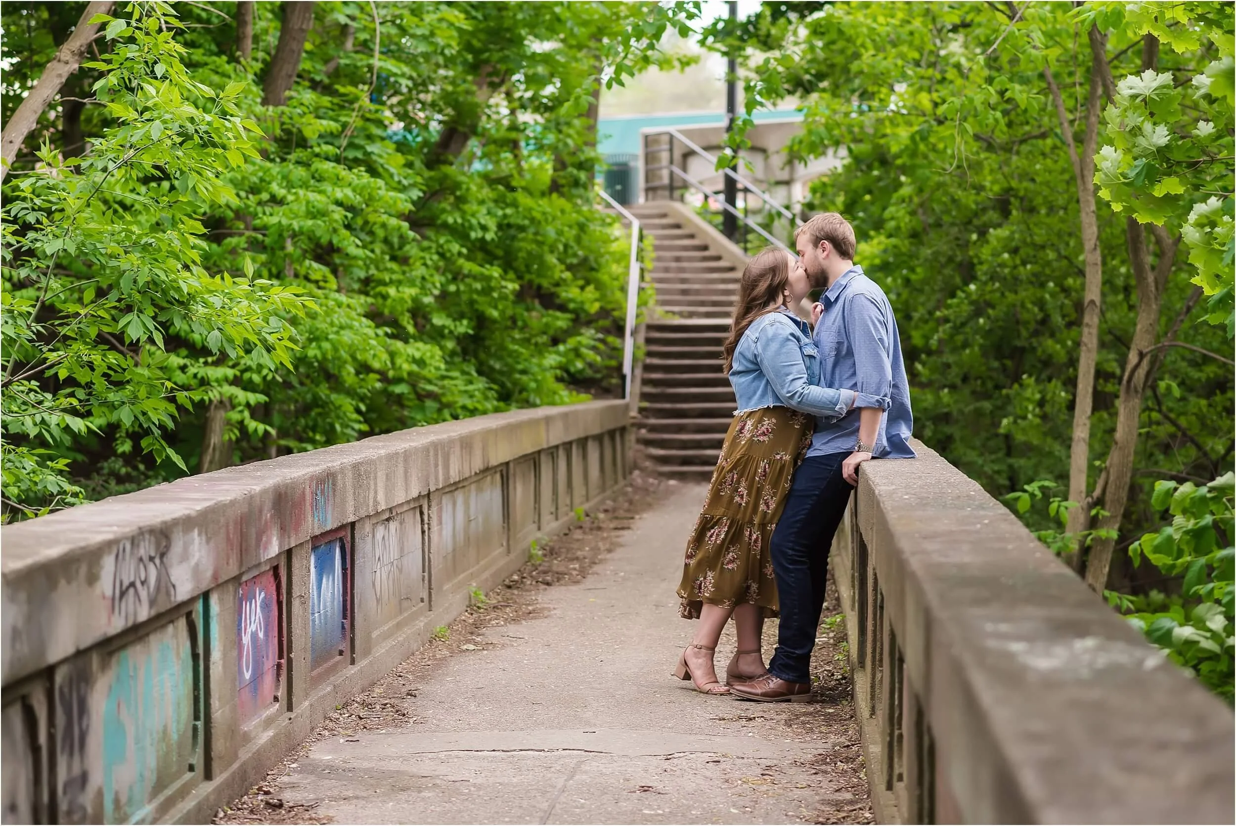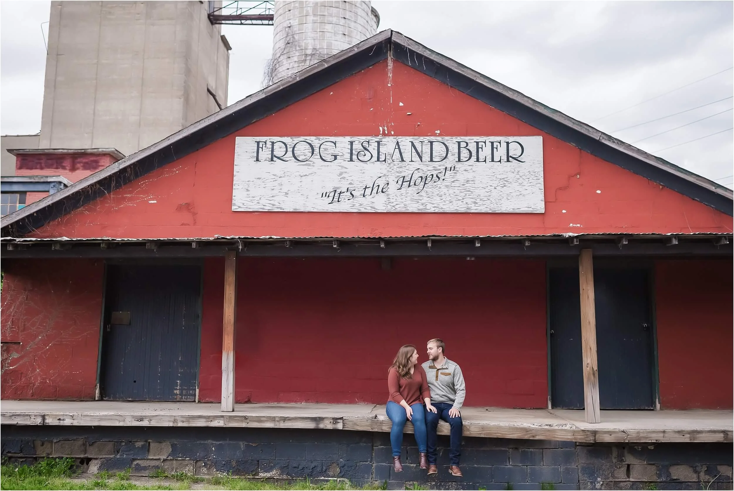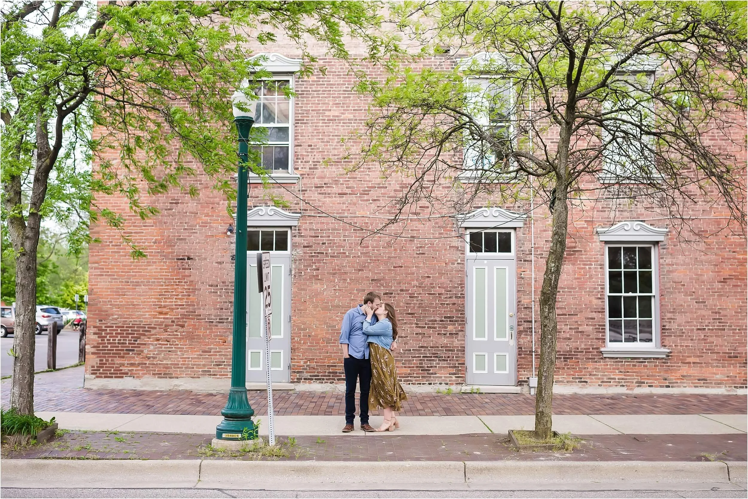 Skip the same-old, same-old and head to Ypsi’s Depot Town for engagement photos that are anything but boring! M & G chose Depot Town for it’s charm and it’s close proximity to Corner Brewing, their favorite brewery and hang out. This cool little spot is a revitalized historic district that’s bursting with character. Think exposed brick and old train depots that give off serious industrial vibes, mixed with pops of color from funky shops and artsy murals. It’s the perfect mix of edgy and playful! Plus, the best part? Corner Brewery and 734 Brewing are both right there, so you can toast to your upcoming adventure together with some delicious craft beers (and maybe even snag some cute clinking-glasses photos!).