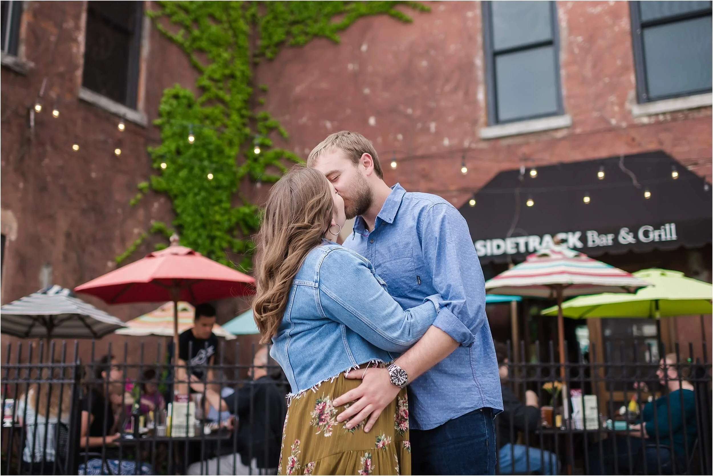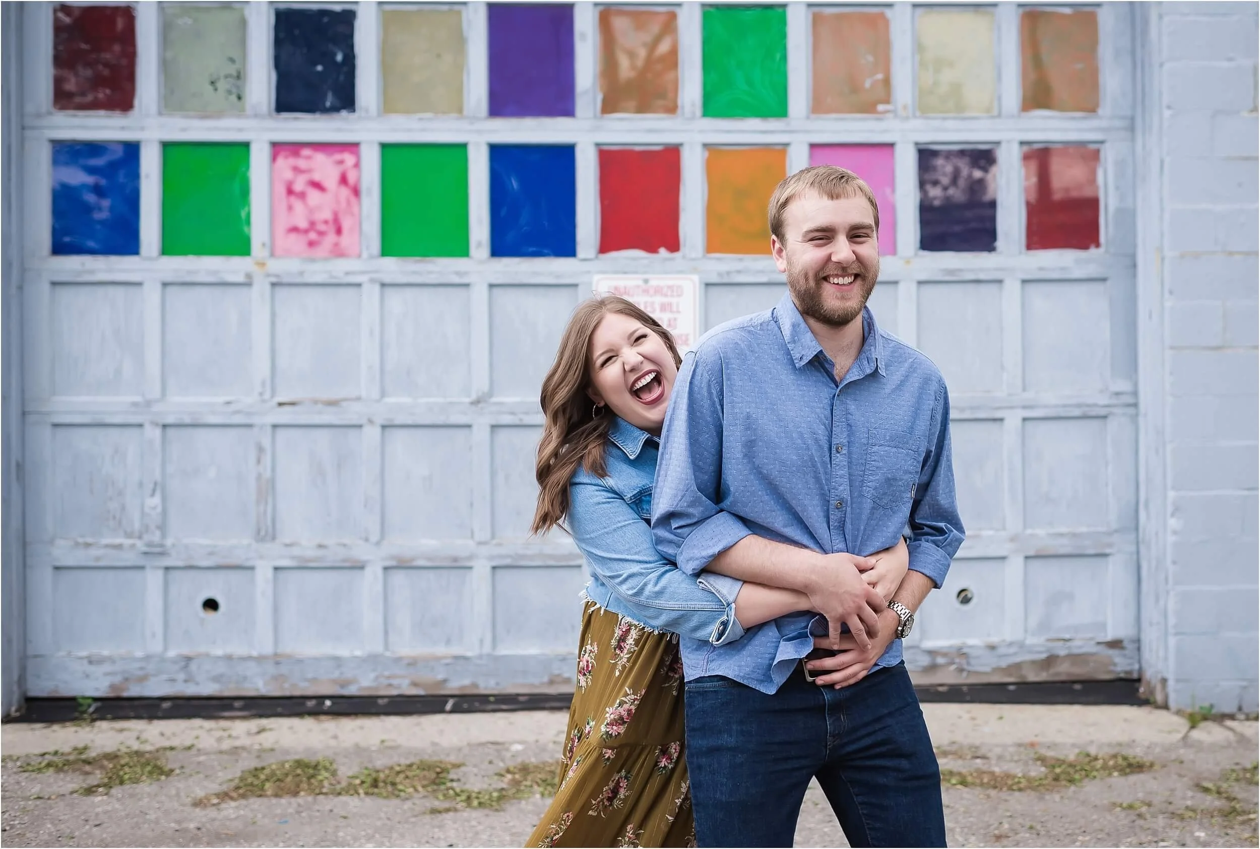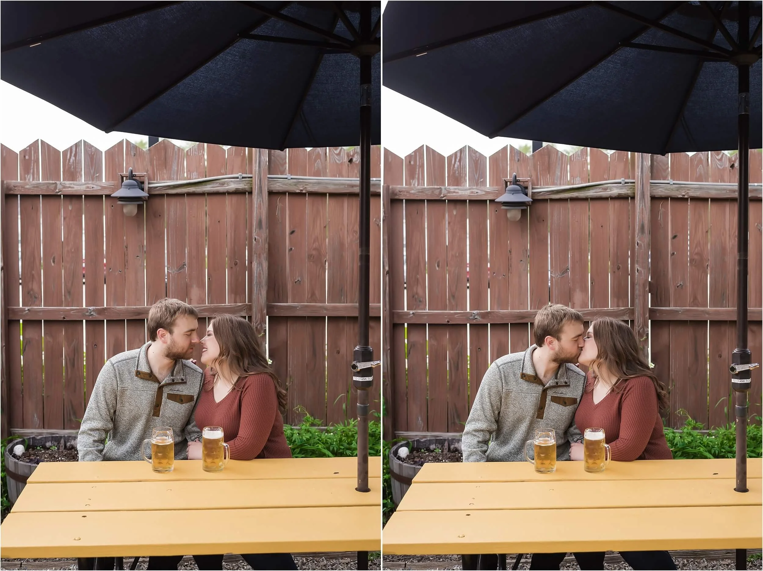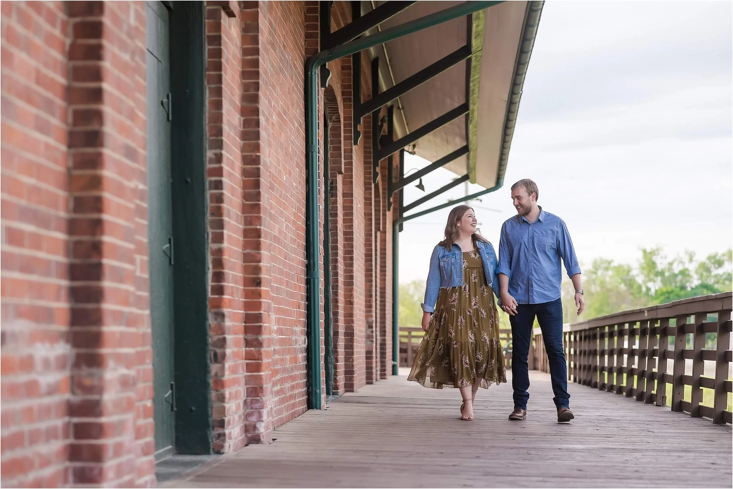 Skip the same-old, same-old and head to Ypsi’s Depot Town for engagement photos that are anything but boring! M & G chose Depot Town for it’s charm and it’s close proximity to Corner Brewing, their favorite brewery and hang out. This cool little spot is a revitalized historic district that’s bursting with character. Think exposed brick and old train depots that give off serious industrial vibes, mixed with pops of color from funky shops and artsy murals. It’s the perfect mix of edgy and playful! Plus, the best part? Corner Brewery and 734 Brewing are both right there, so you can toast to your upcoming adventure together with some delicious craft beers (and maybe even snag some cute clinking-glasses photos!).